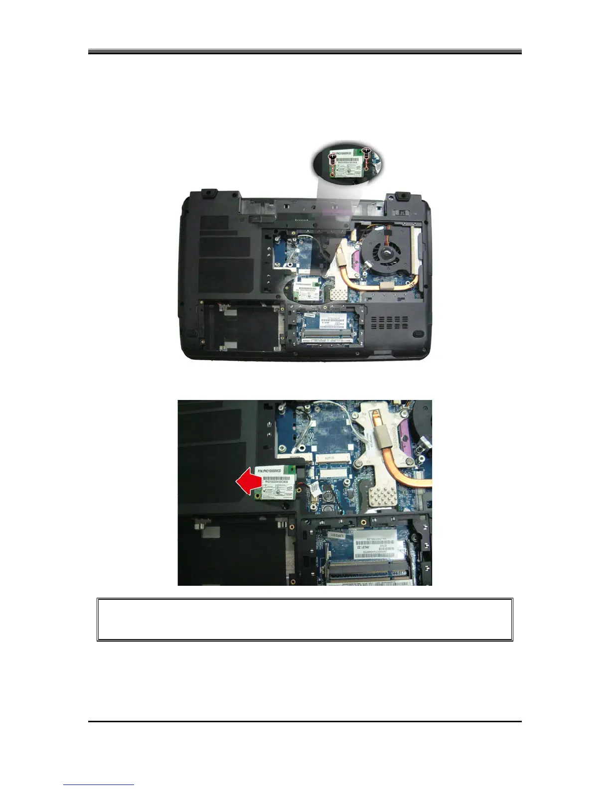 1. Turn the notebook over. Remove two screws from the modem card.