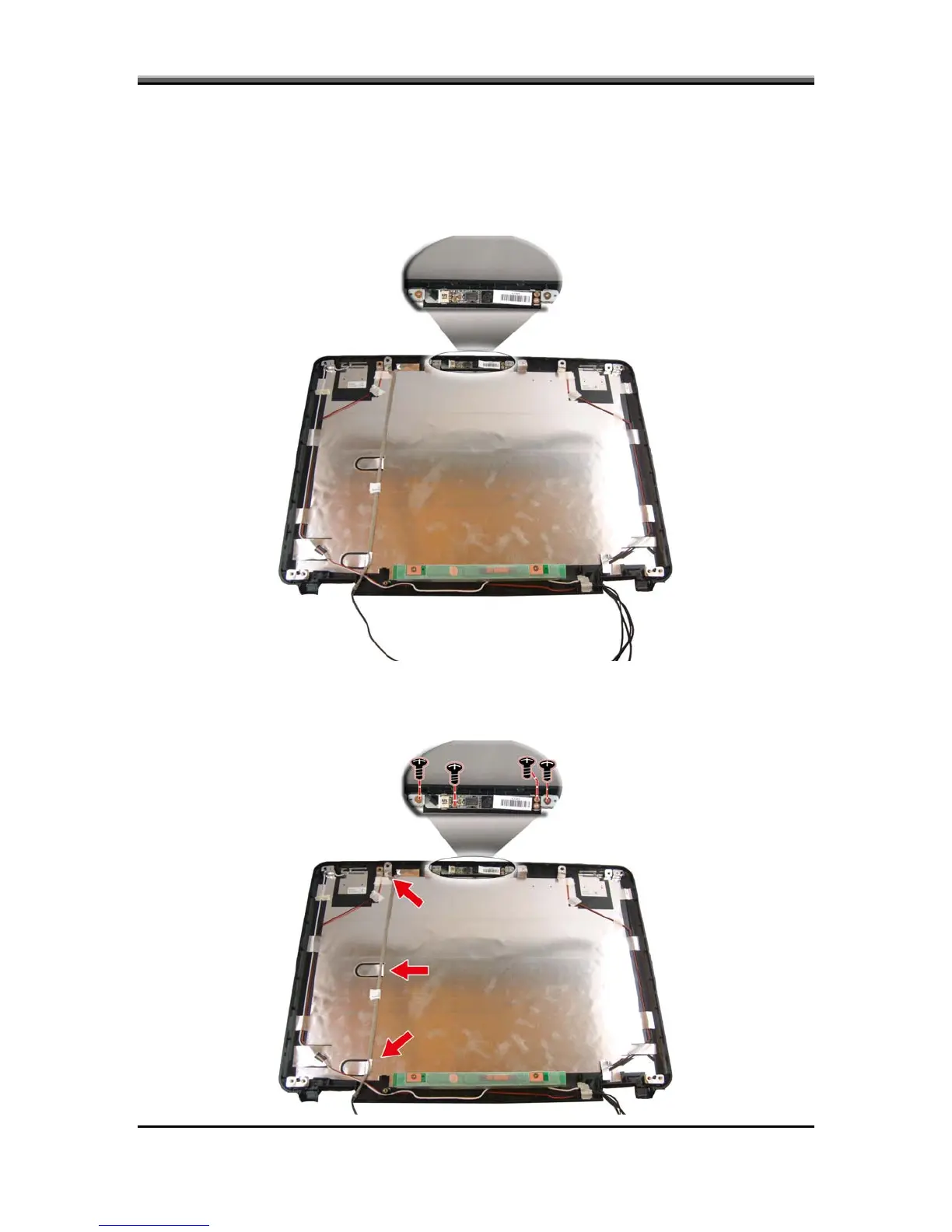 2. Remove four screws securing the camera module to the LCD cover. Remove