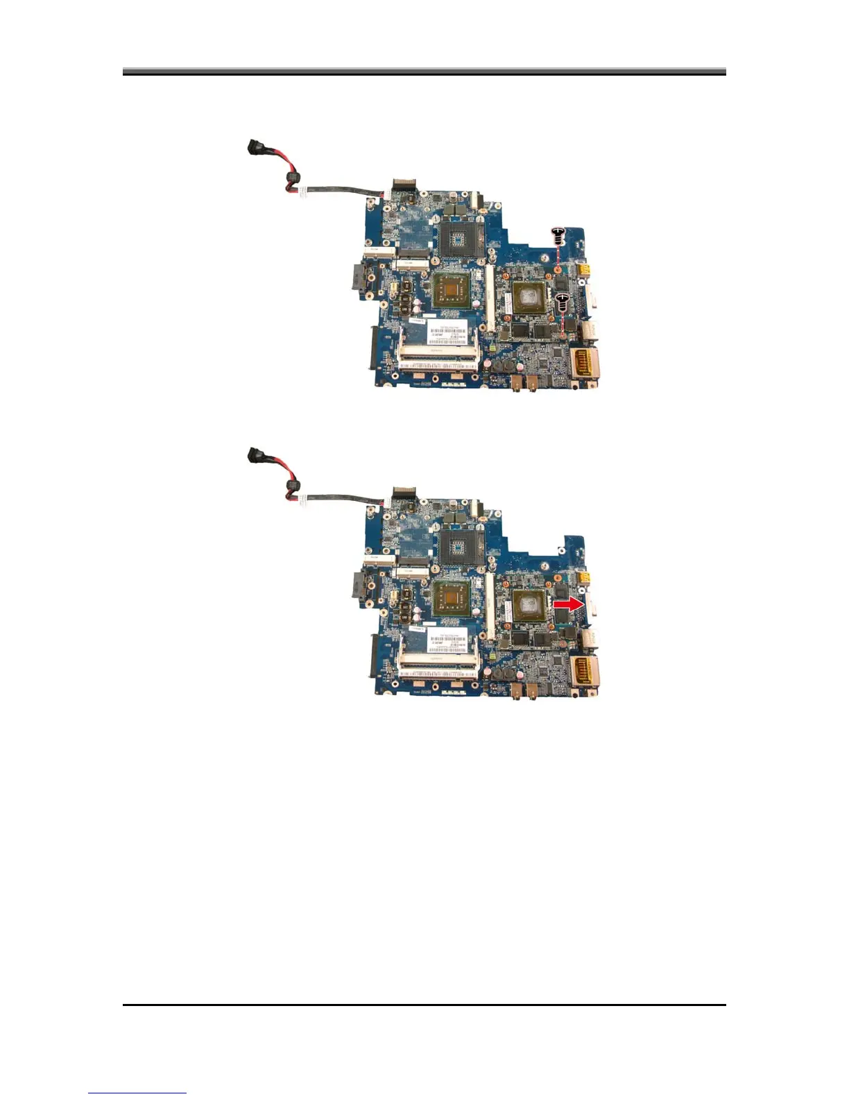 3. Remove the two M2.5x3 screws securing the VGA board to the motherboard.
