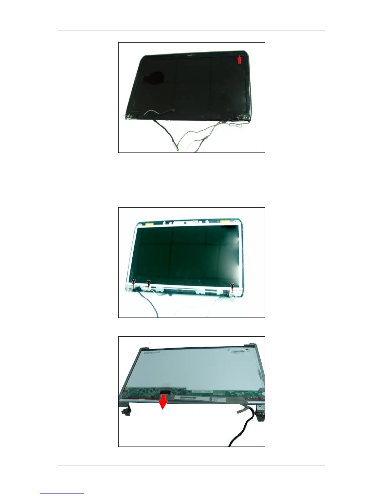 4. Remove the three screws mounting the display, and LVDS/CMOS cable to