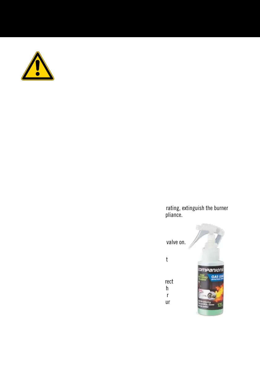 • If you smell gas immediately turn the gas off at the cylinder and move the appliance and