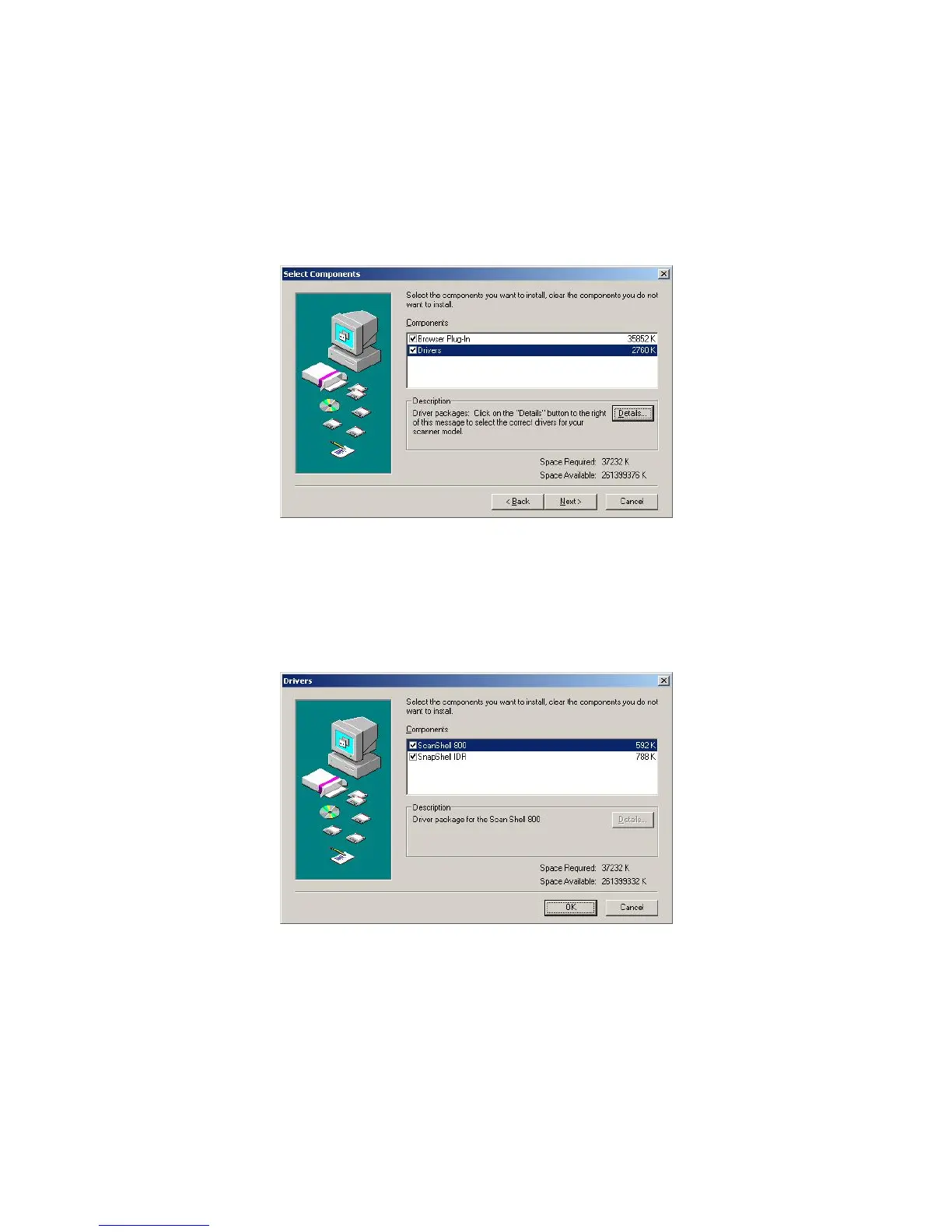 IDR. HIGHLIGHTING THE DRIVERS OPTION IN THE SELECT COMPONENTS WINDOW