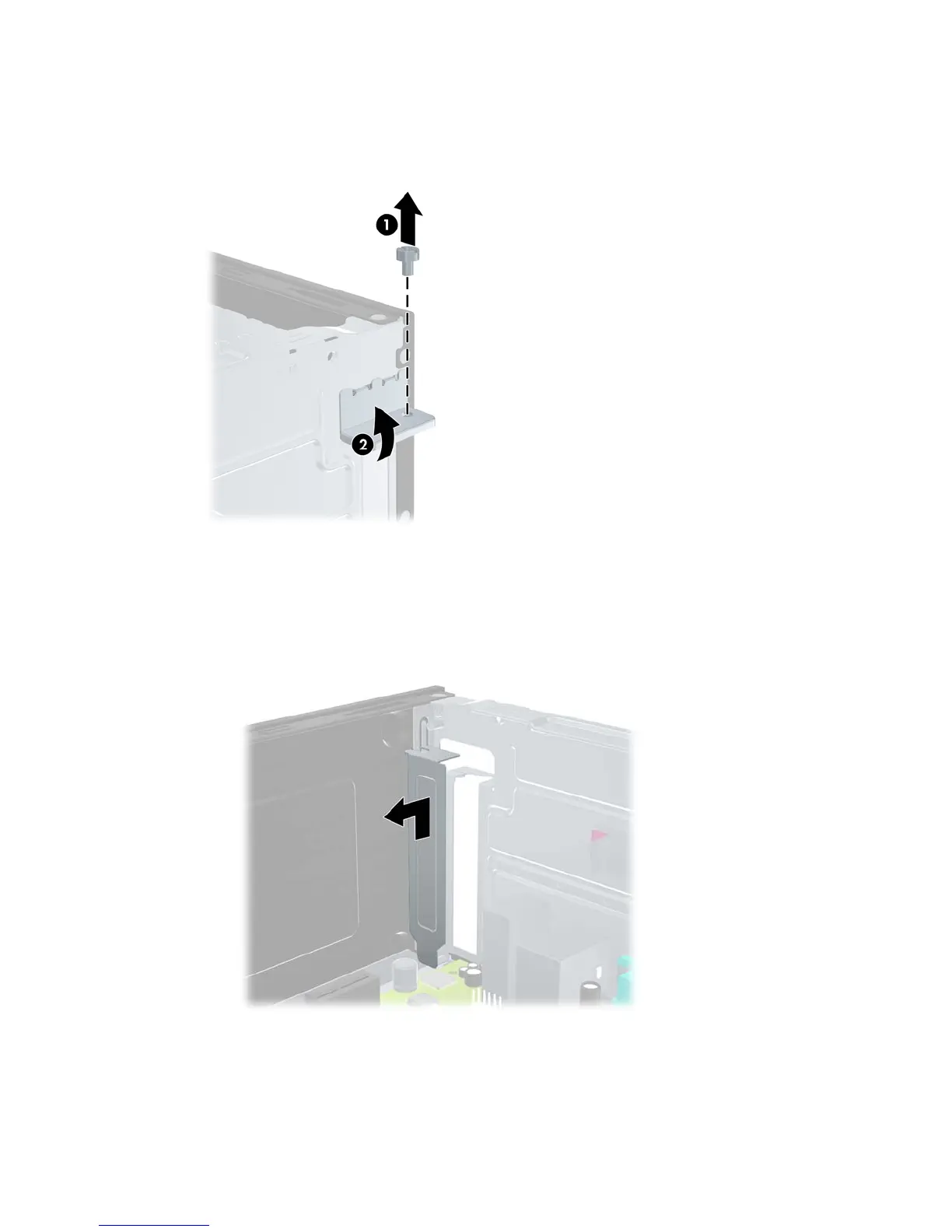 Remove the screw from the slot cover retainer (1) then tilt the bottom of the slot cover retainer