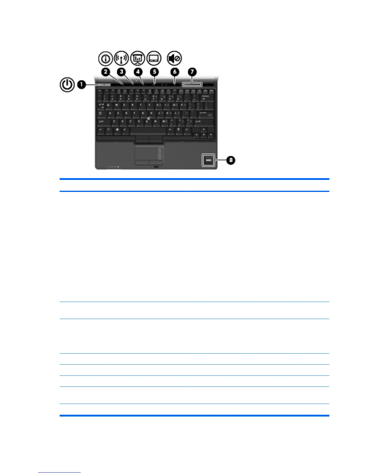 (5) TouchPad on/off button Turns the TouchPad on and off.