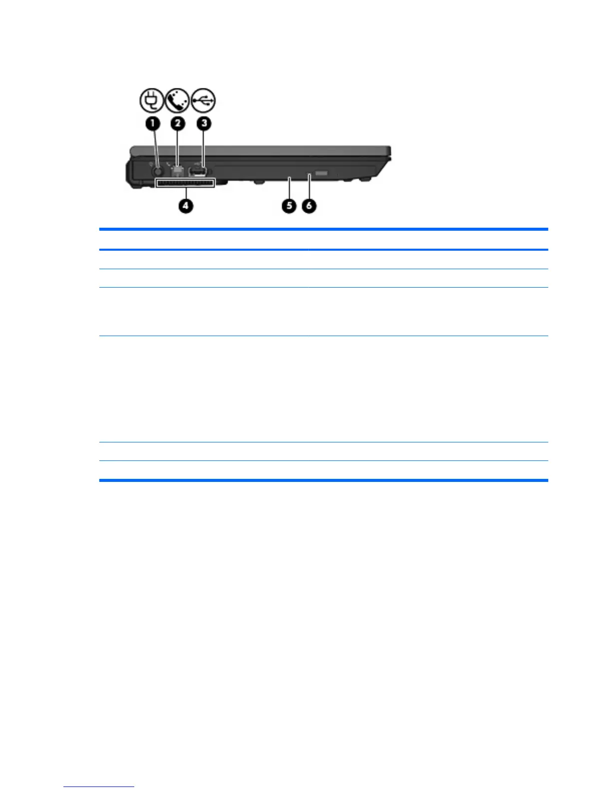 (2) RJ-11 (modem) jack Connects a modem cable.