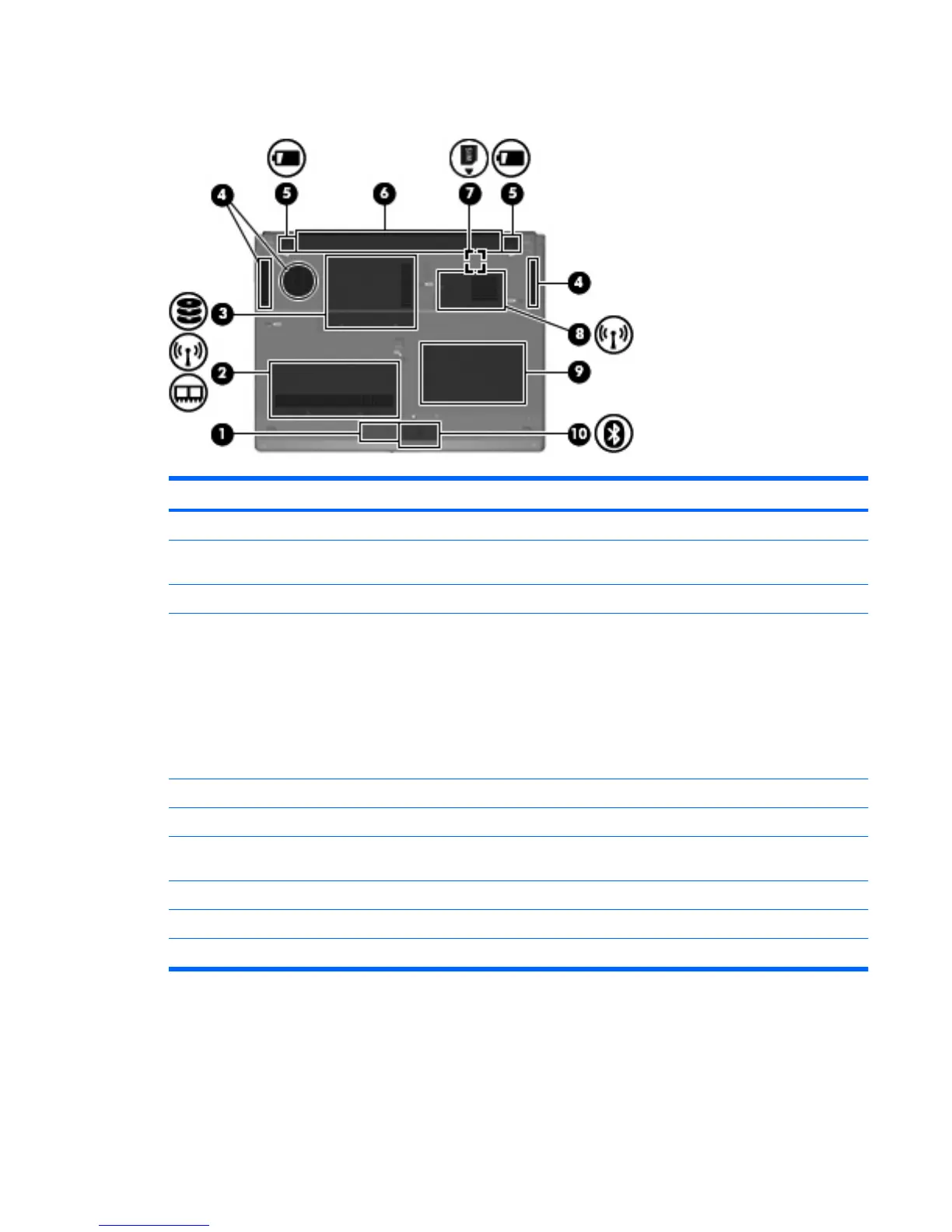 (8) WWAN module compartment Contains a WWAN (wireless wide-area network) module slot.
