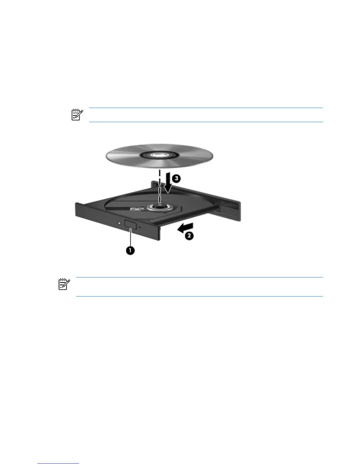 NOTE: After you insert a disc, a short pause is normal. If you have not selected a media player,