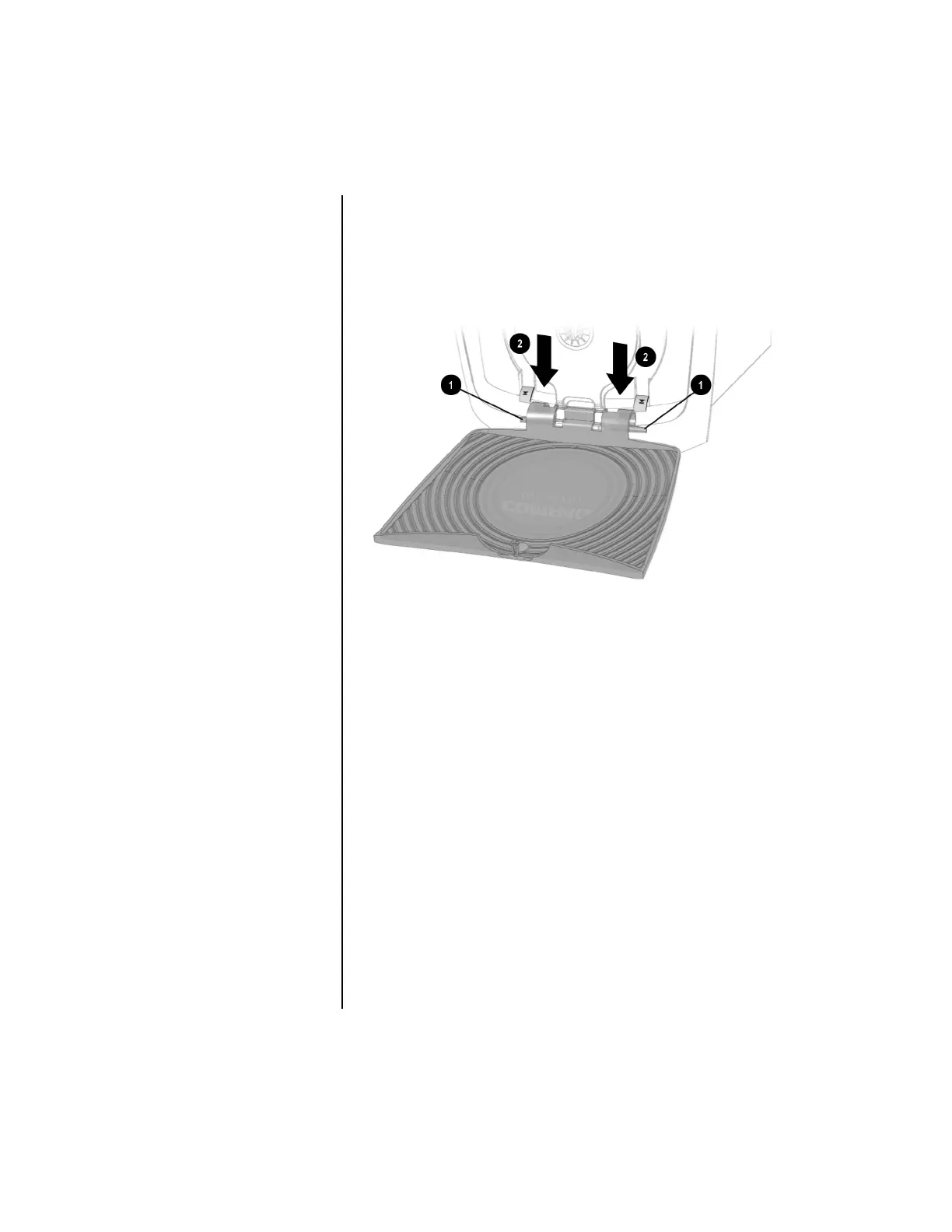 2. Locate the hinge pins 1 (left and right side) on the CD