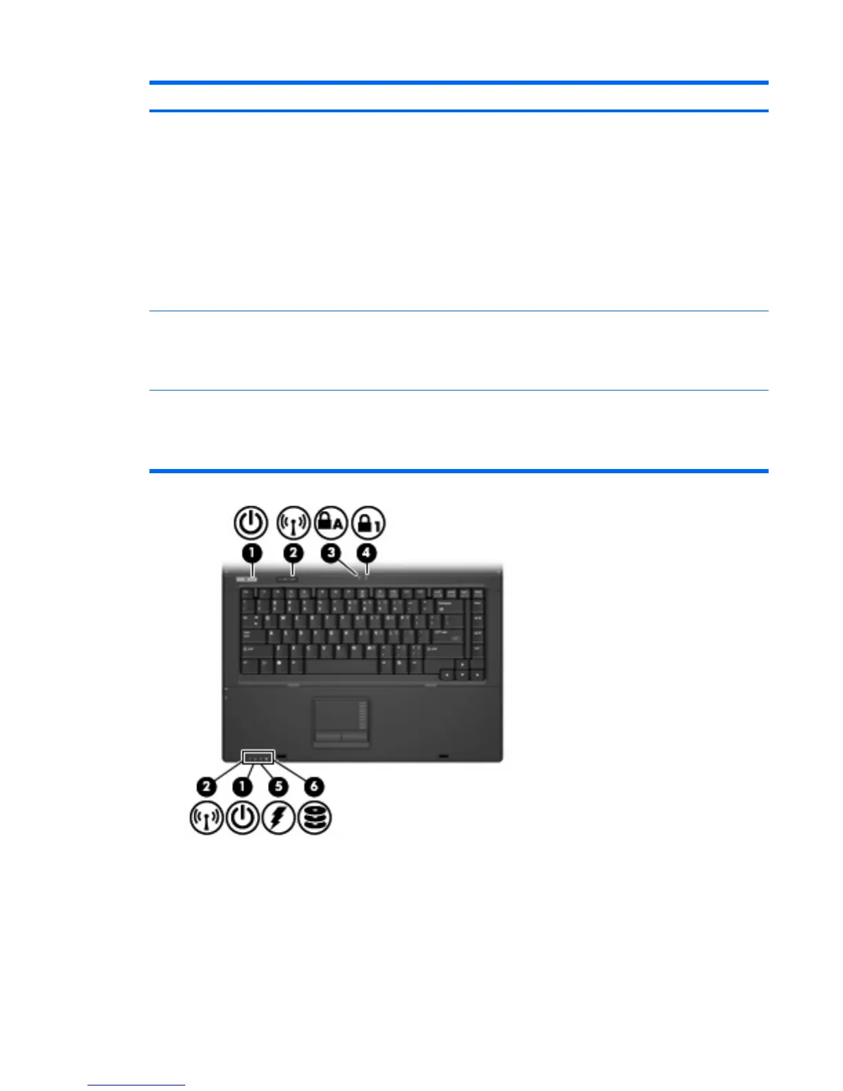 †The 2 wireless lights display the same information. The light on the wireless button is visible only when the computer is open.
