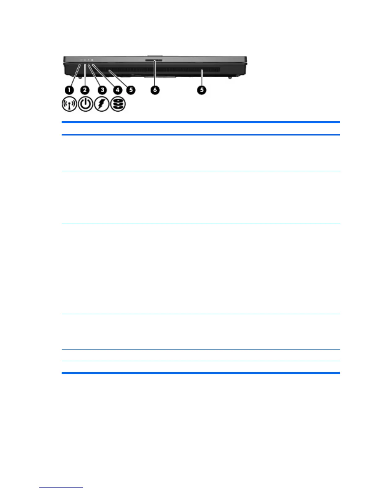 (6) Display release latch Opens the computer.