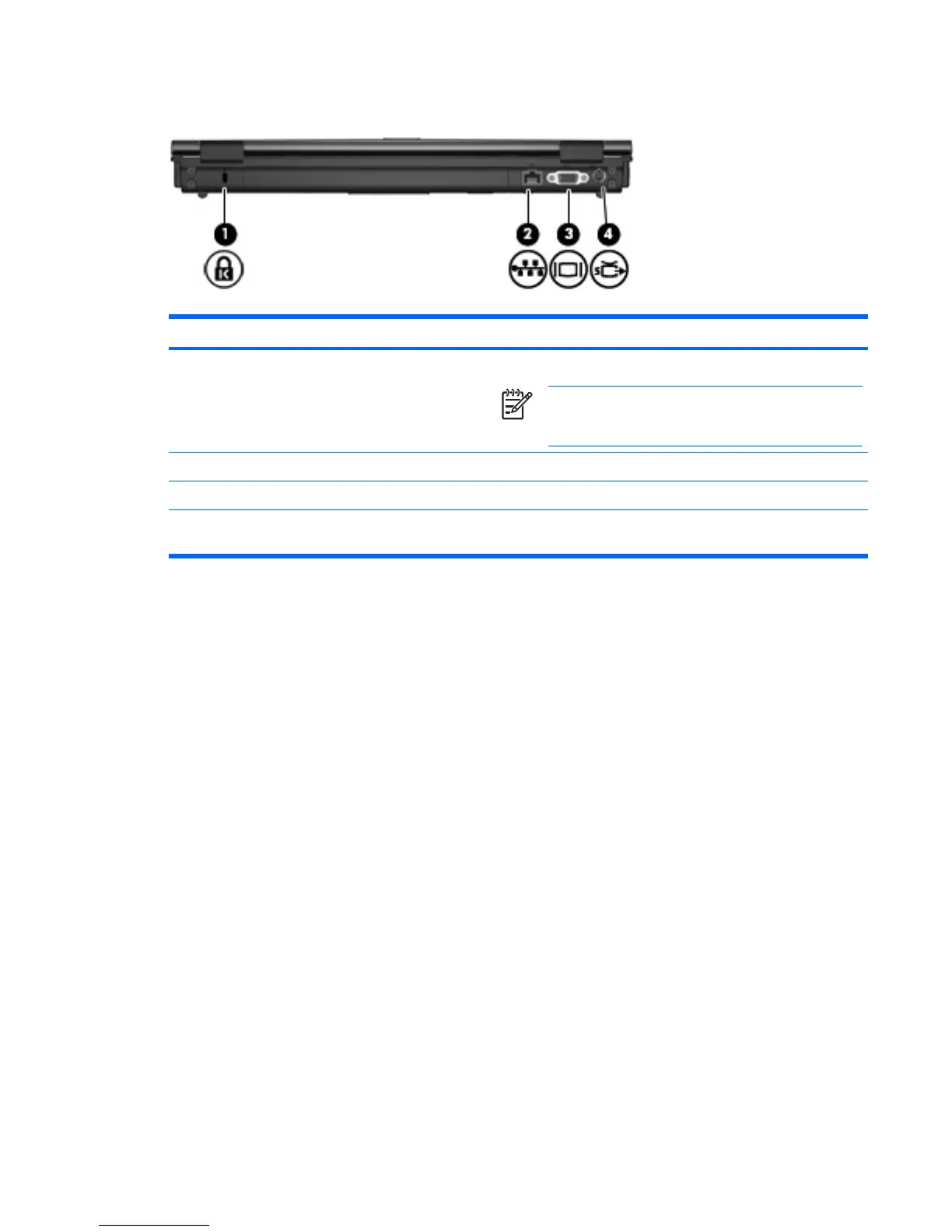 (1) Security cable slot Attaches an optional security cable to the computer.