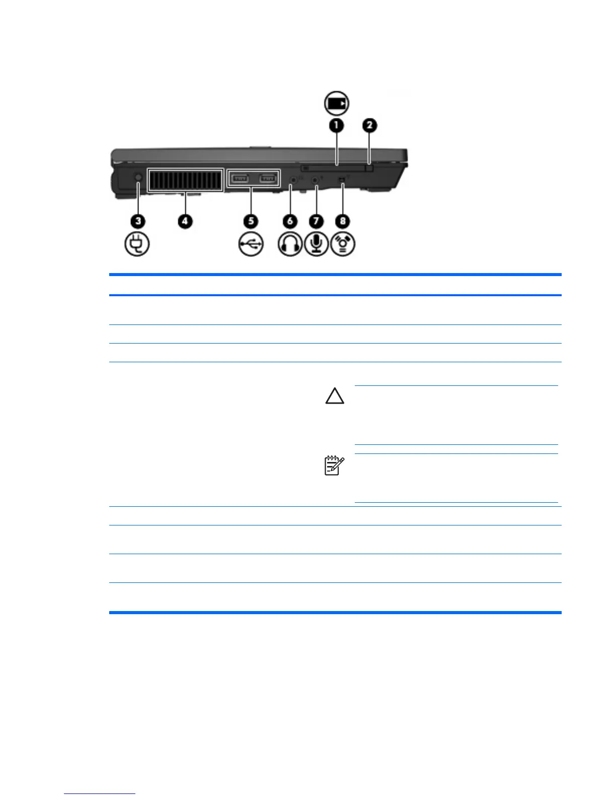 (8) 1394 port (select models only) Connects an optional IEEE 1394 or 1394a device, such as a