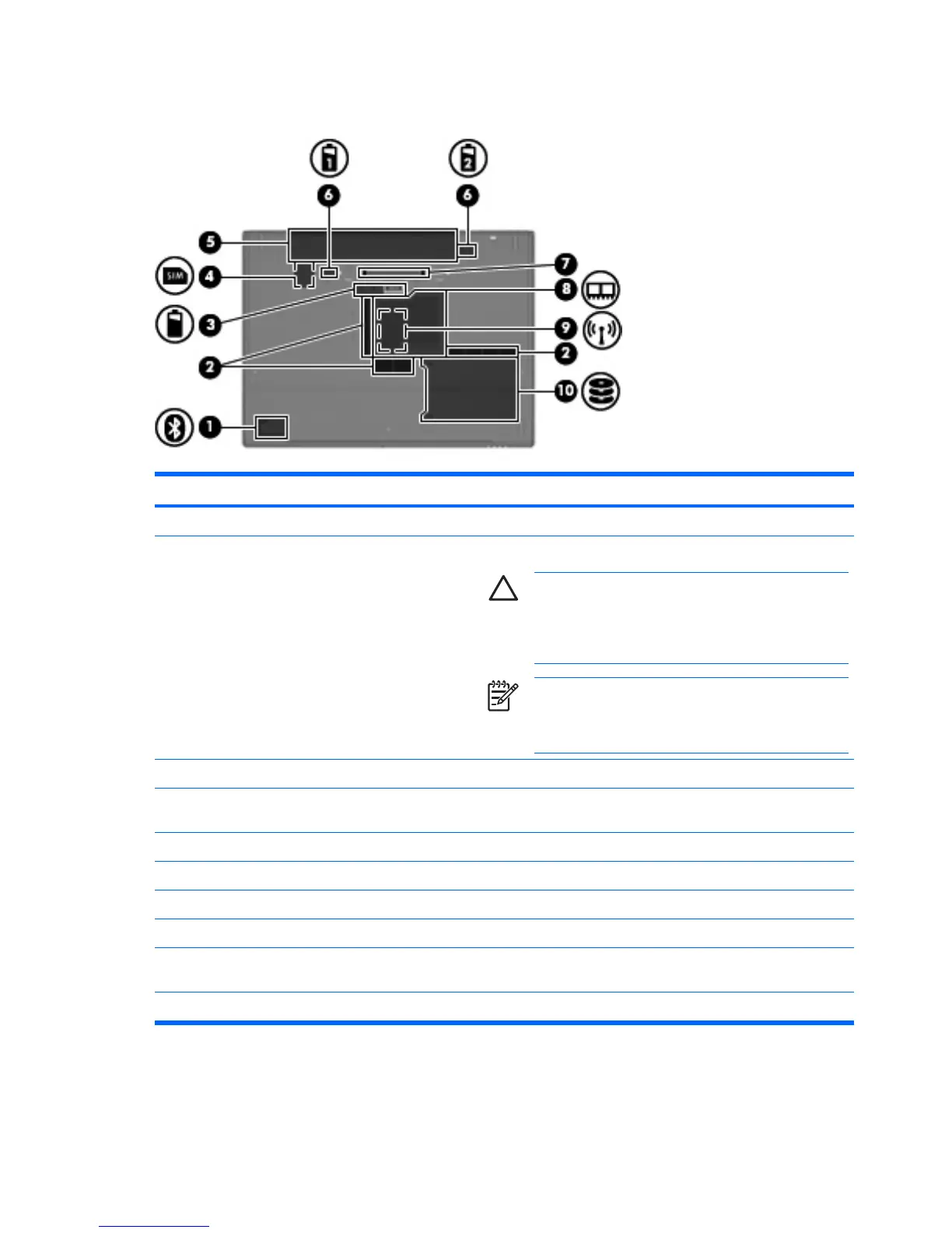 (1) Bluetooth compartment (select models only) Contains a Bluetooth device.