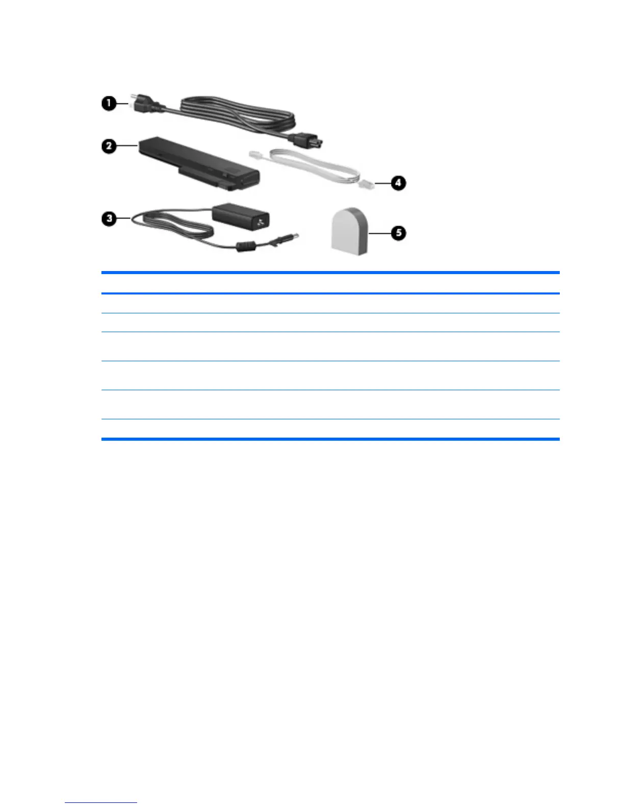 (5) Country-specific modem cable adapter (select