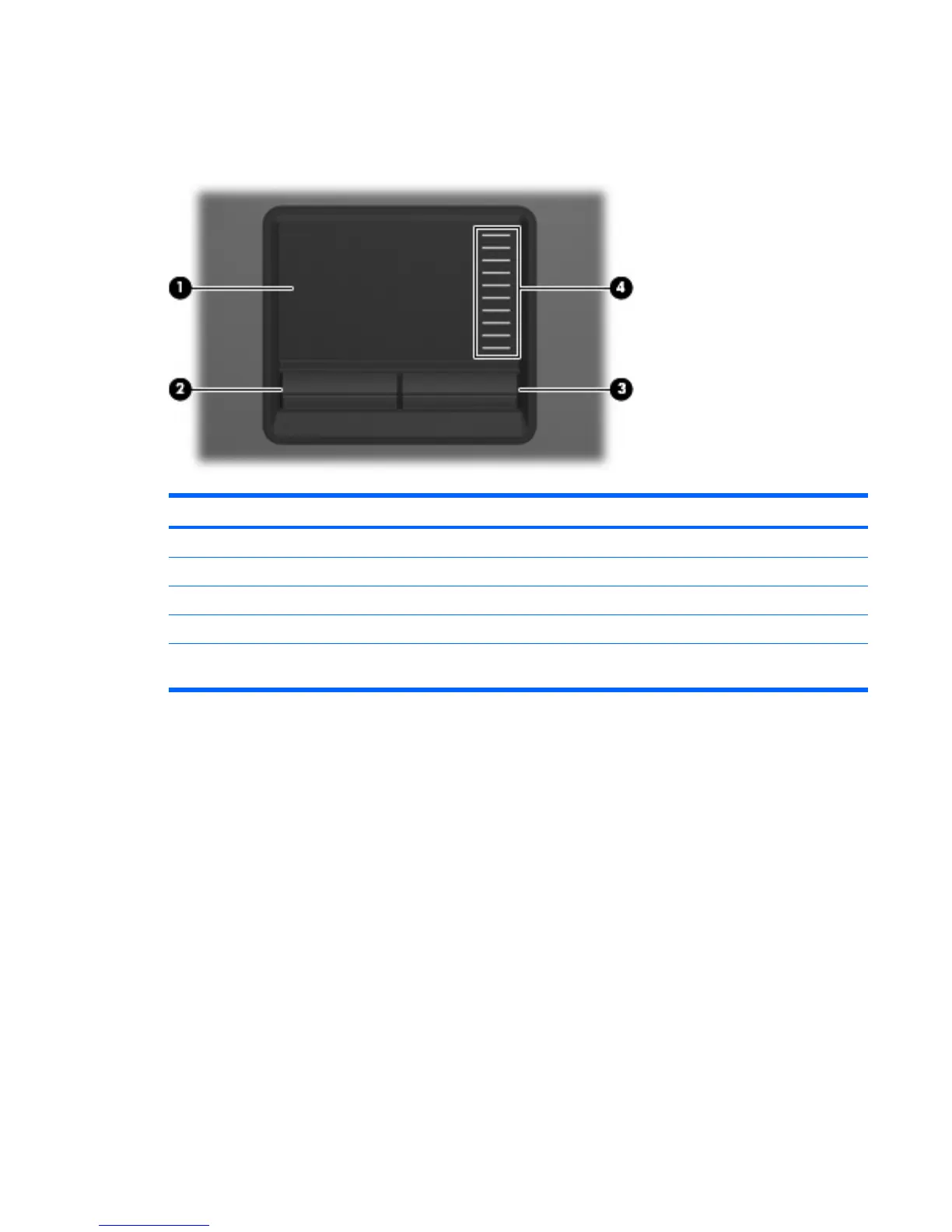 (1) TouchPad* Moves the pointer and selects or activates items on the screen.
