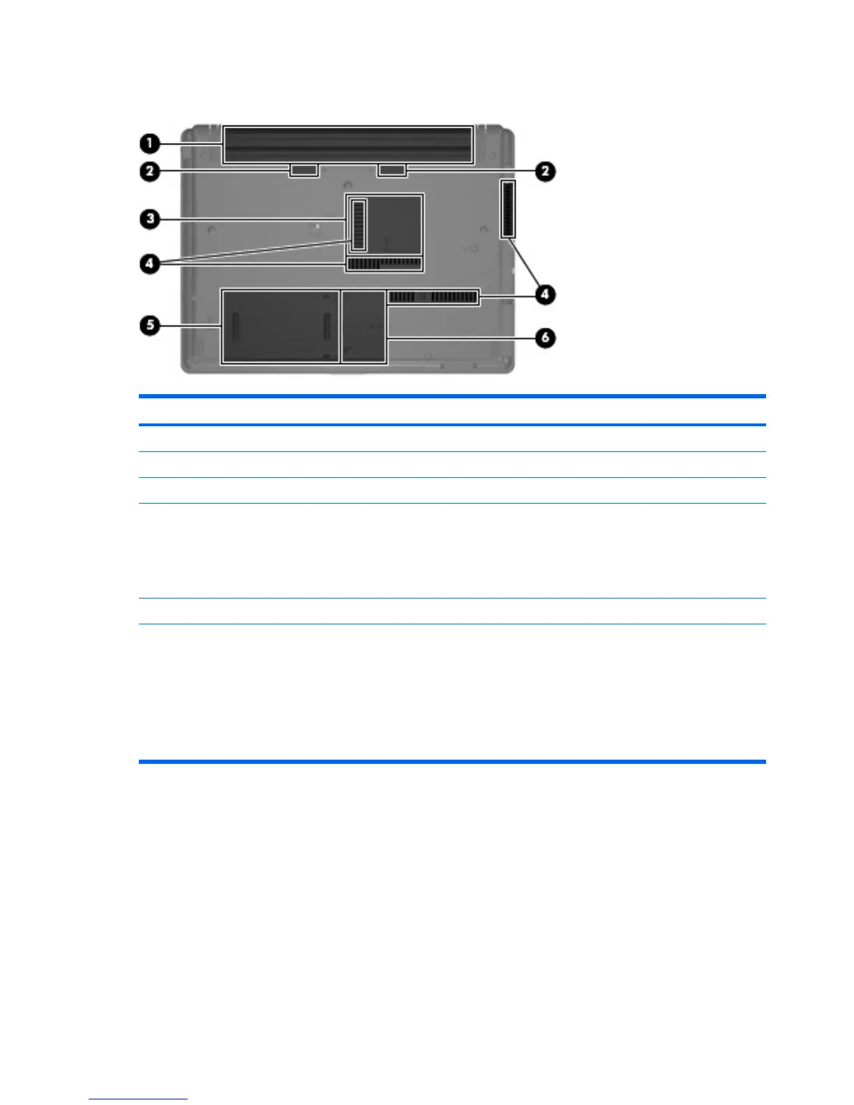 WLAN module compartment (select models only) Contains a WLAN module slot.