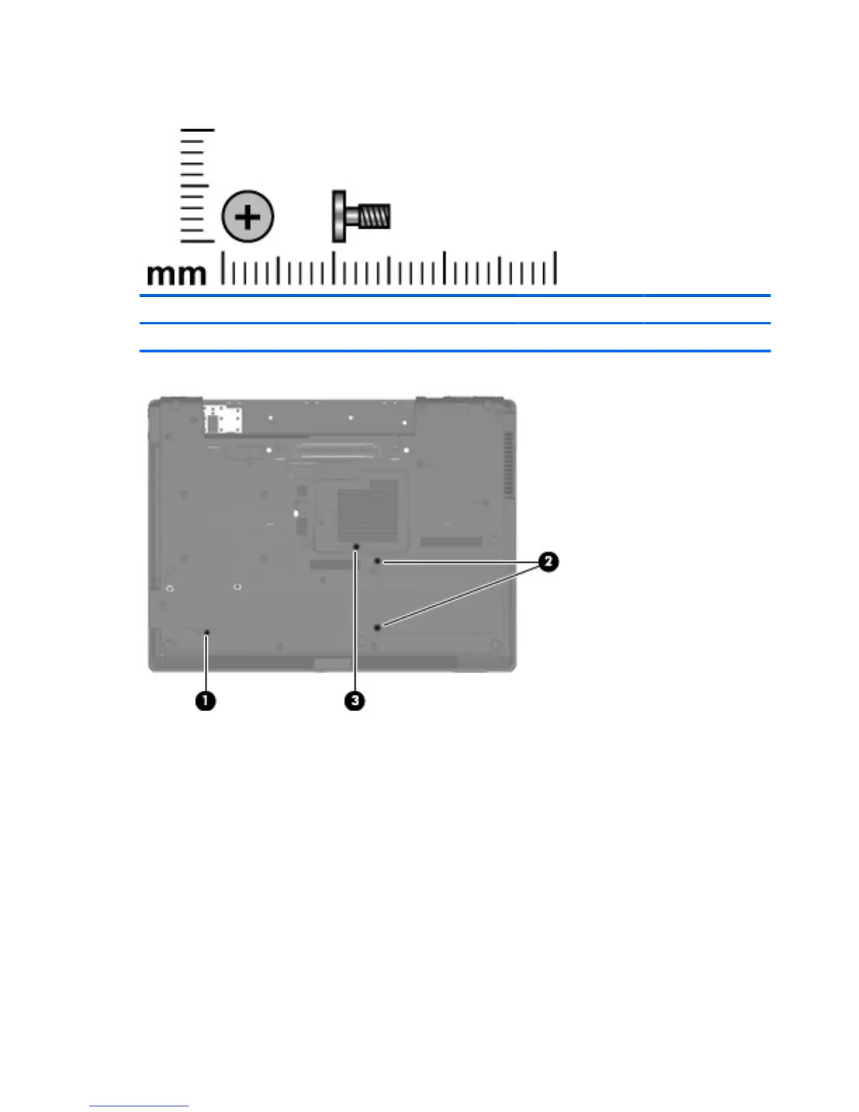 (3) One captive screw that secures the memory/WLAN module compartment cover to the computer