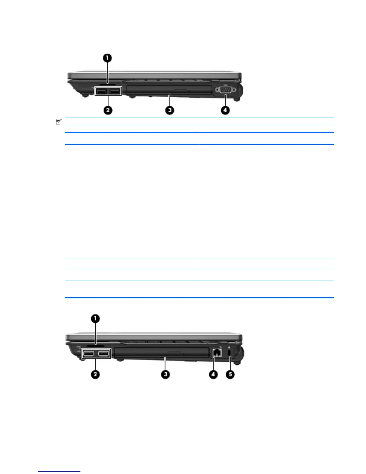 (2) USB ports (2) (select models only) Connect optional USB devices.