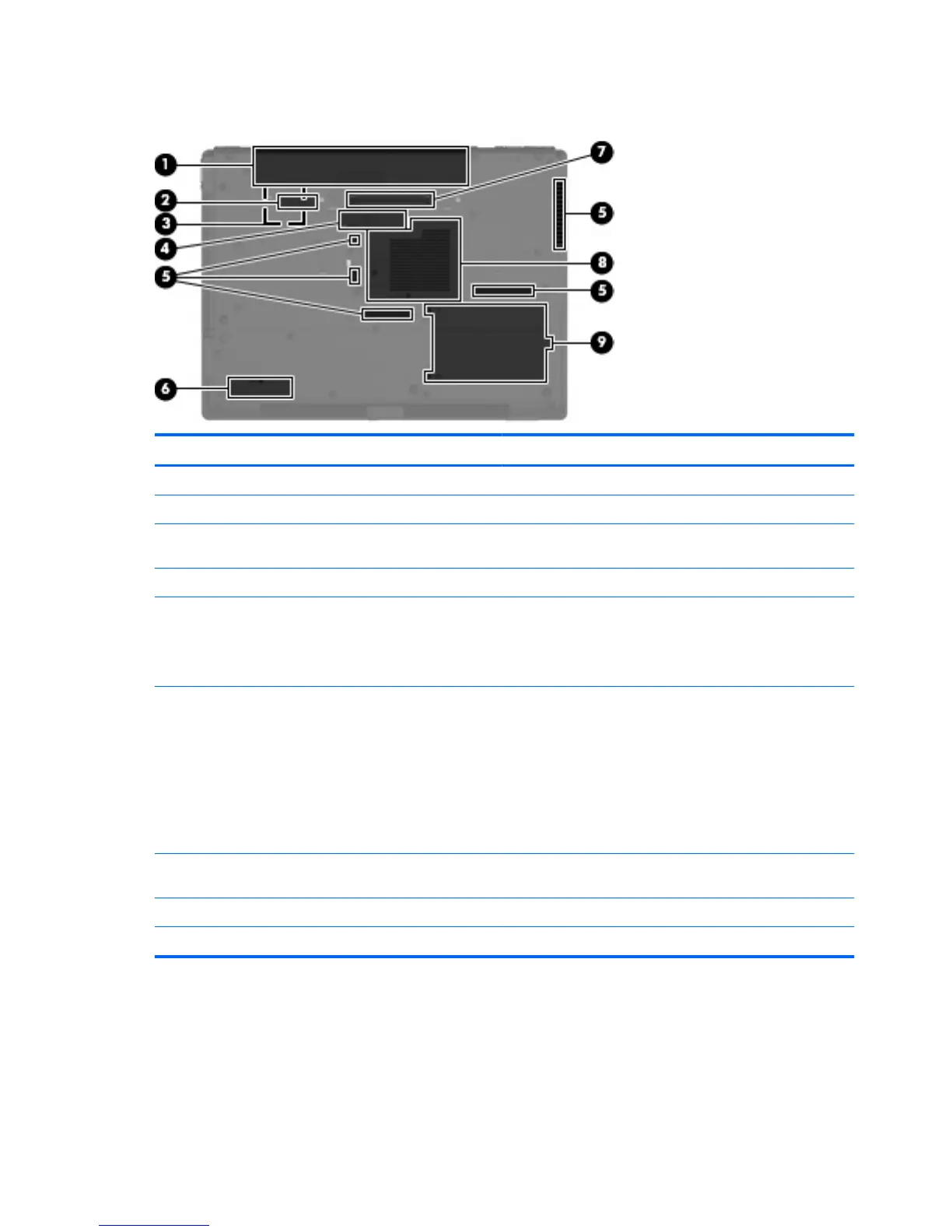 (6) Expansion memory module compartment Contains the expansion memory module slot and the WLAN