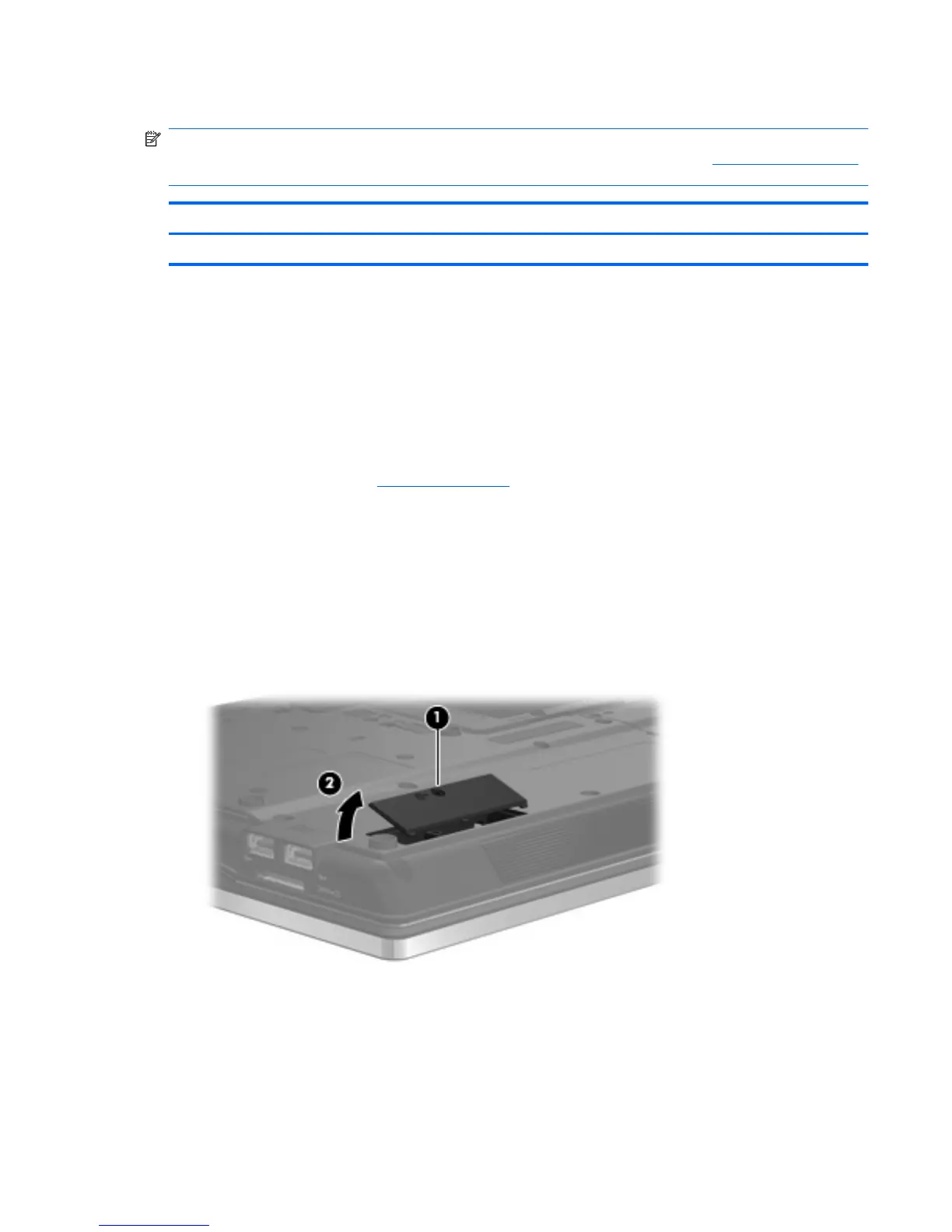 3. Lift the rear edge of the Bluetooth module compartment cover (2), swing it forward, and remove