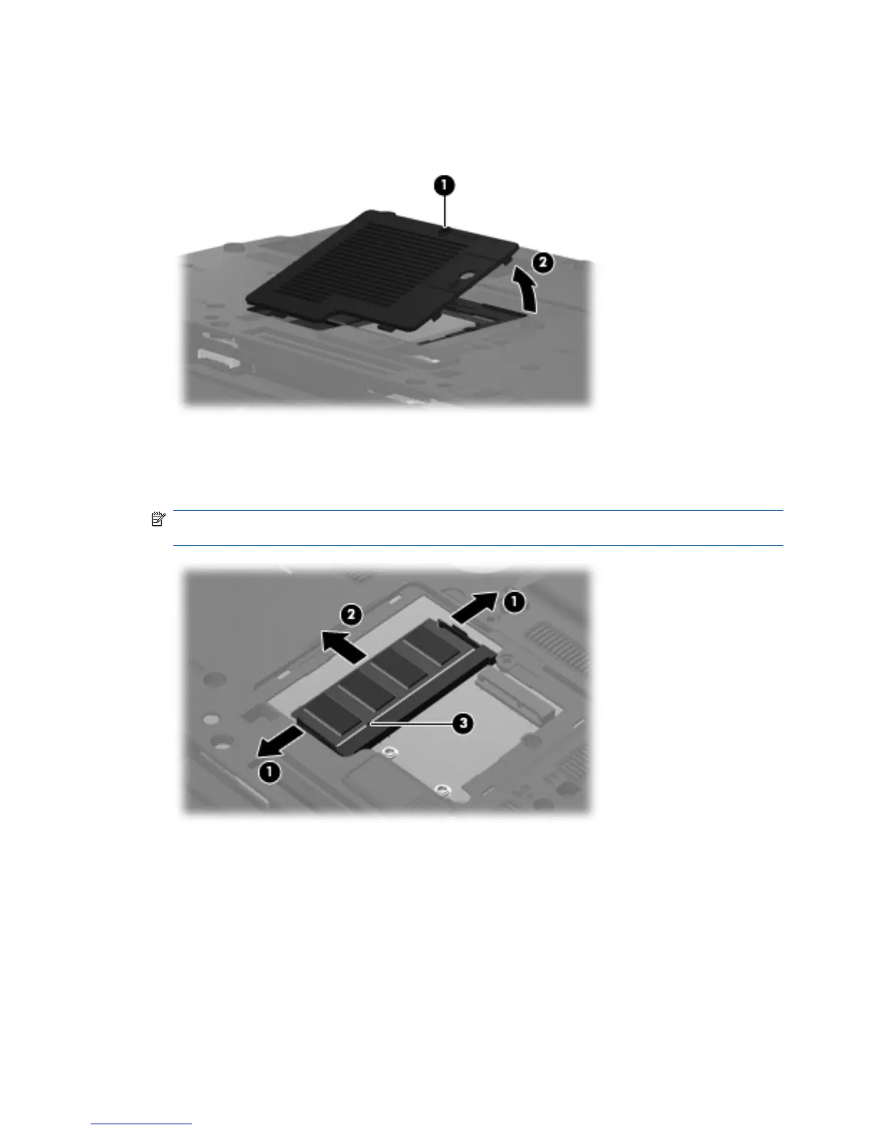 NOTE: Memory modules are designed with a notch (3) to prevent incorrect insertion into the