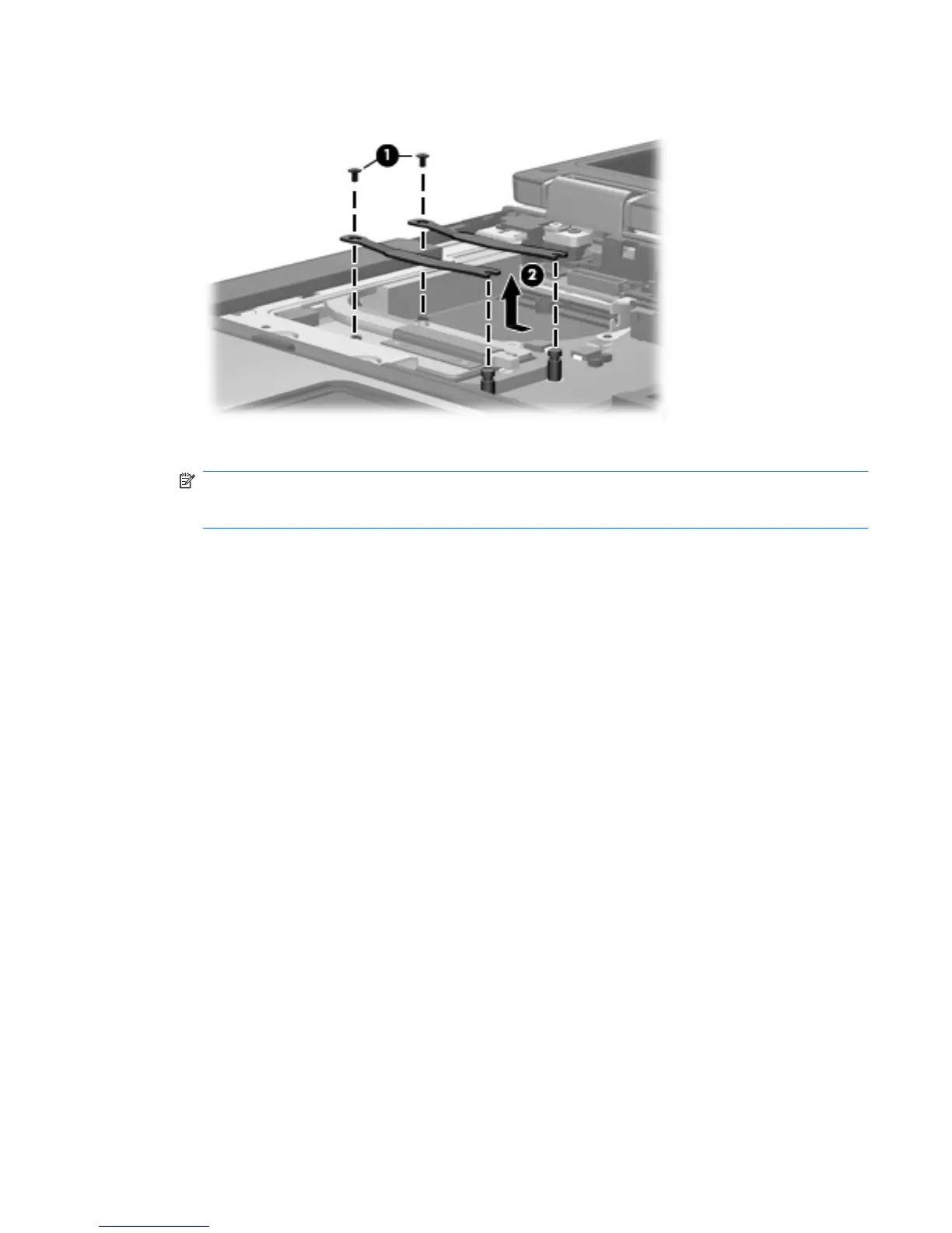 6. Remove the heat sink clips (2) by sliding them to left, and then lifting them up.