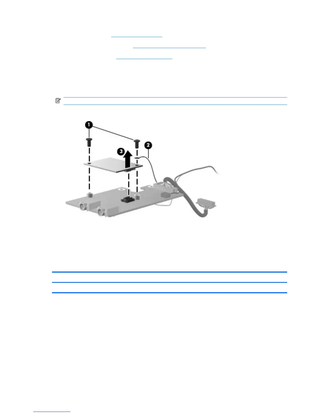 3. Lift the modem module (3) straight up to disconnect it from the audio board.