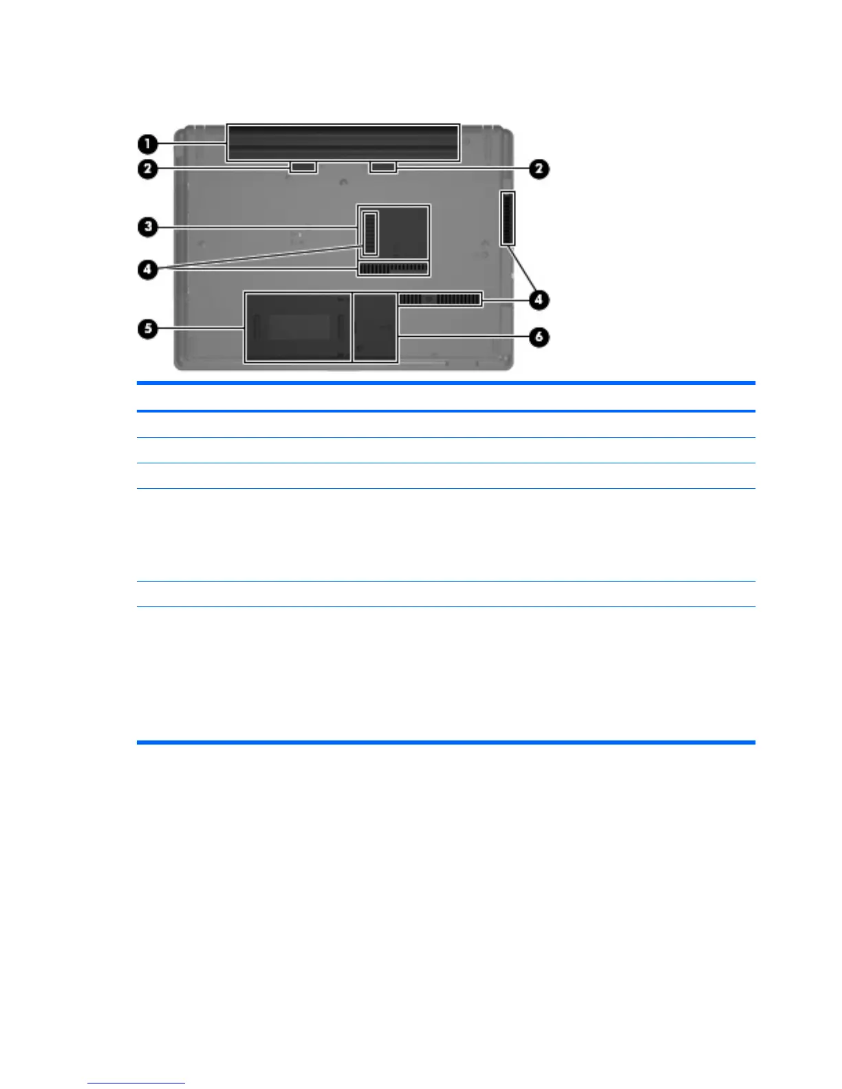 (6) WLAN module compartment (select models only) Contains a WLAN module slot.
