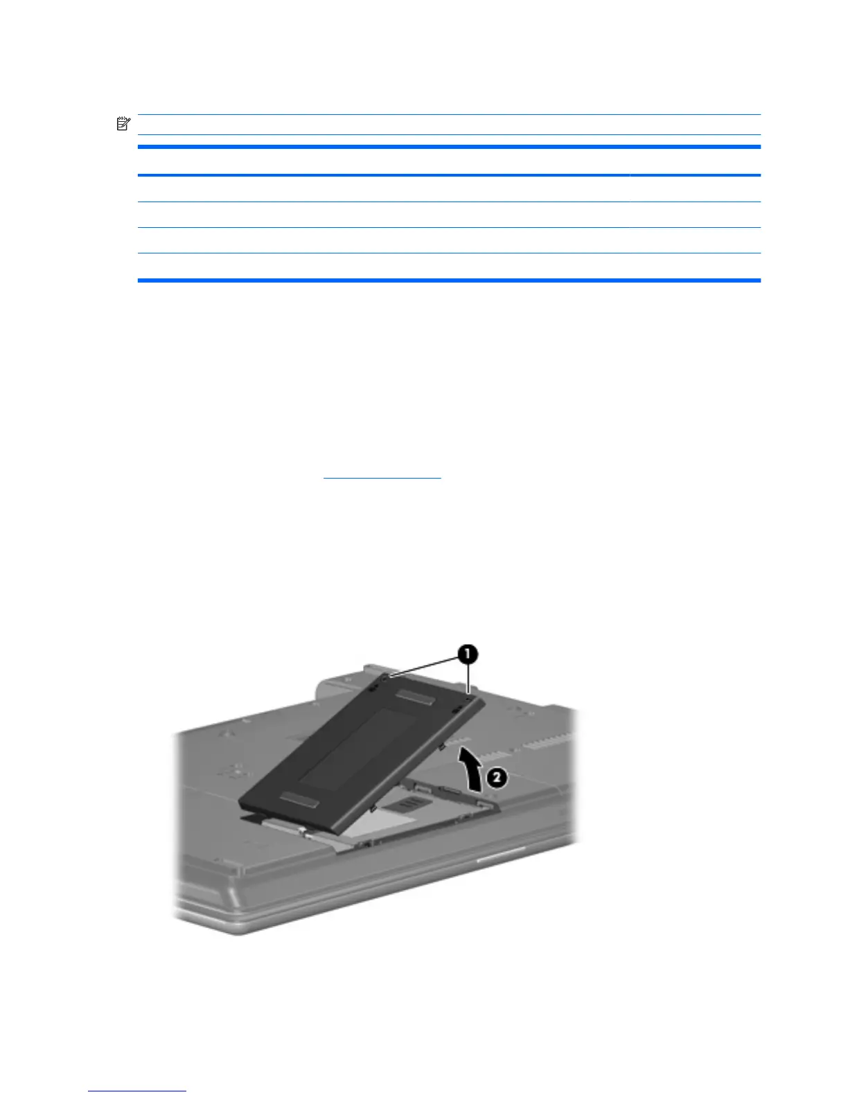 2. Loosen the two Phillips PM2.0×5.0 captive screws (1) that secure the hard drive bay cover to the