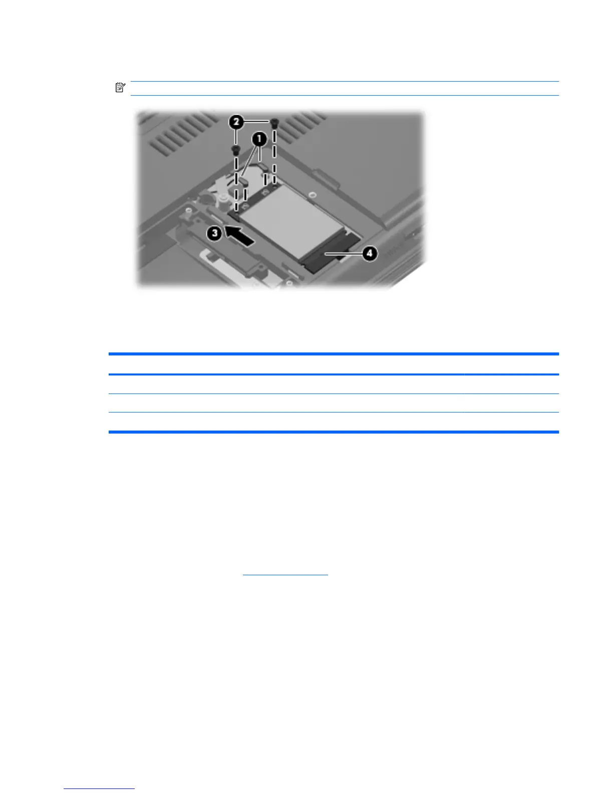 NOTE: WLAN modules are designed with a notch (4) to prevent incorrect installation.