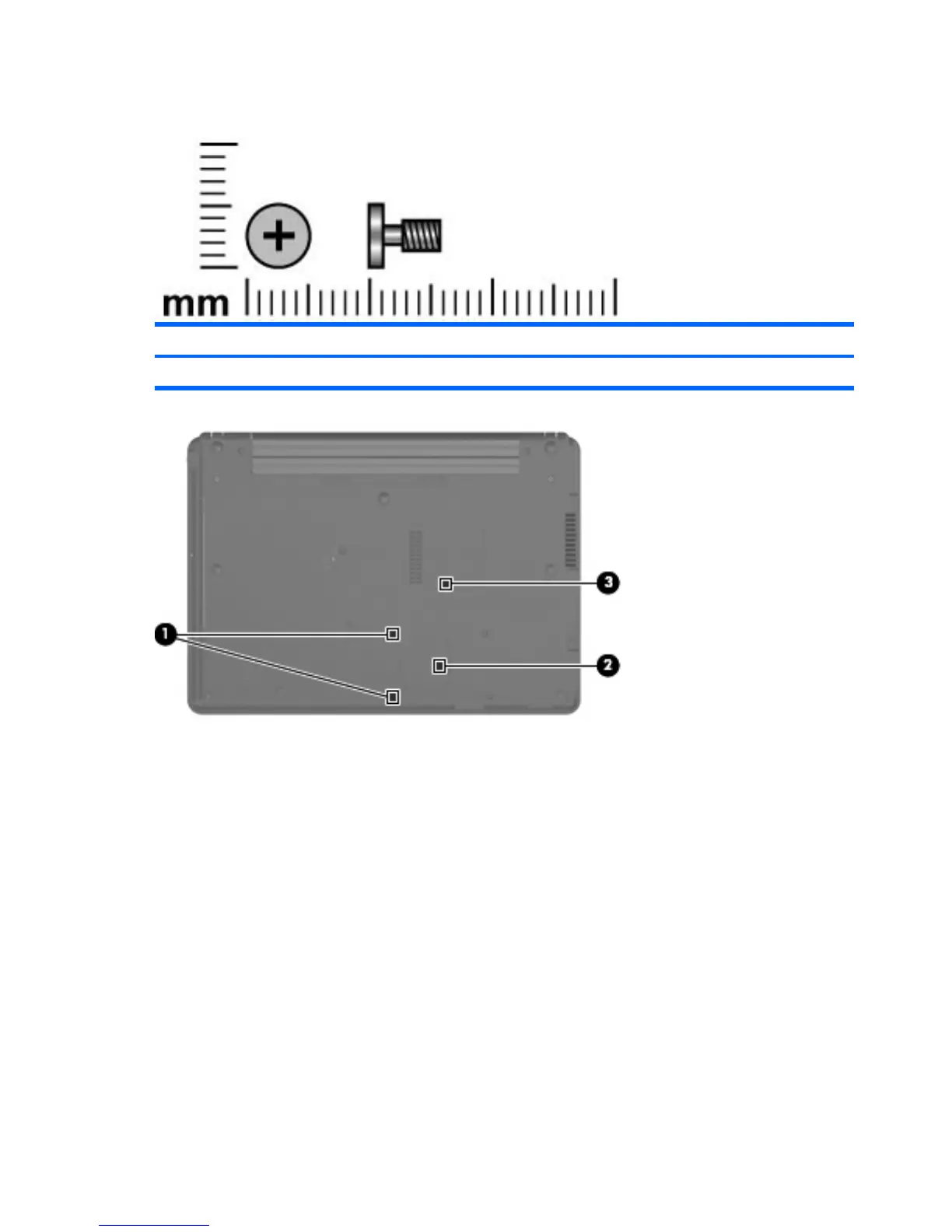 (3) One captive screw that secures the memory module compartment cover to the computer (screw is