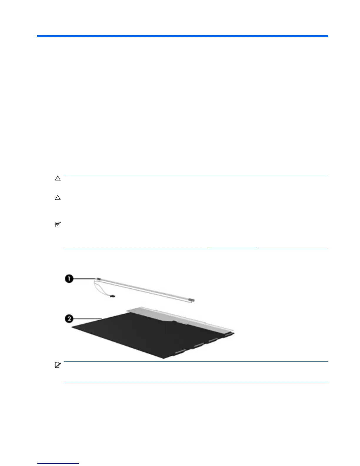 WARNING! The backlight contains mercury. Exercise caution when removing and handling the