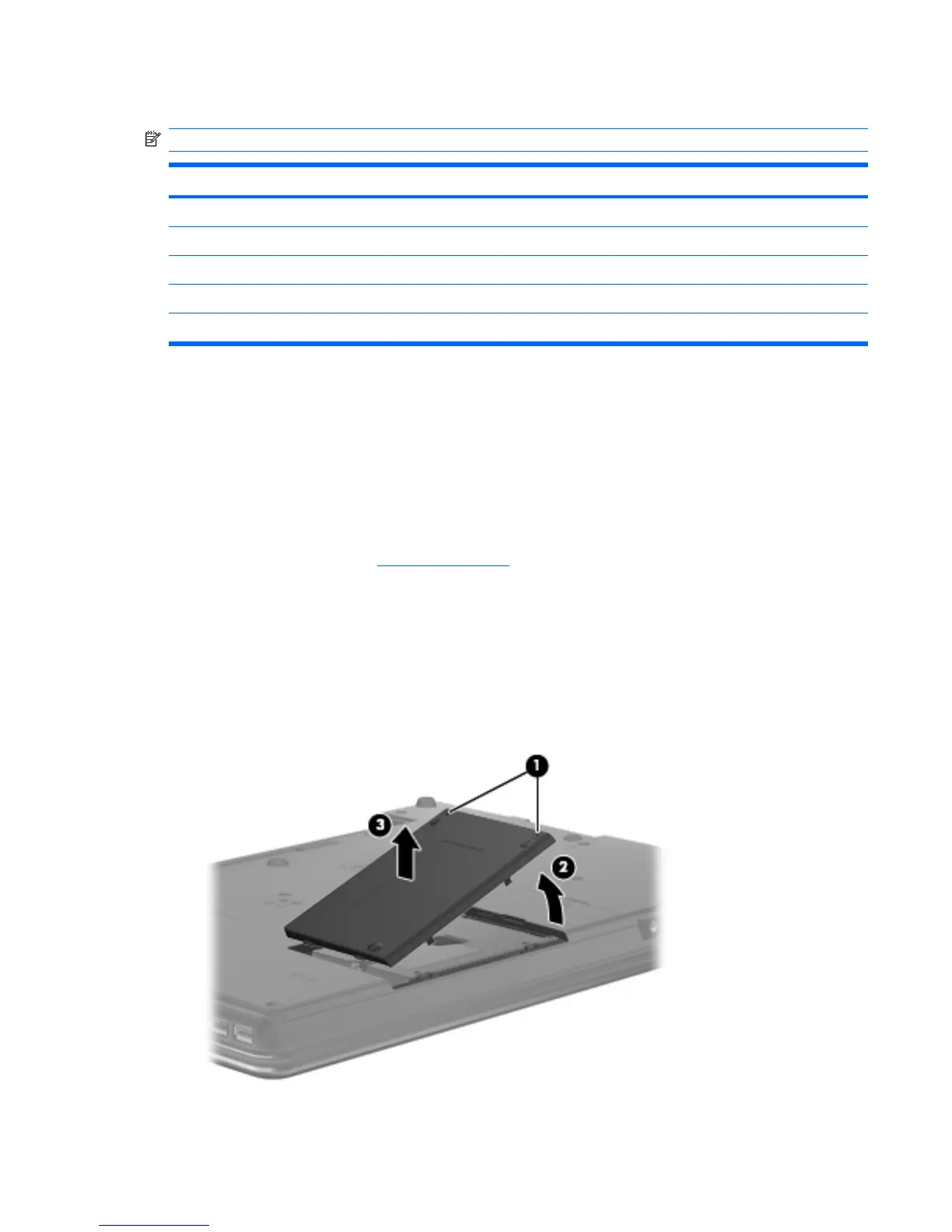 3. Lift the right side of the hard drive bay cover (2), swing it to the left, and remove the cover (3). The