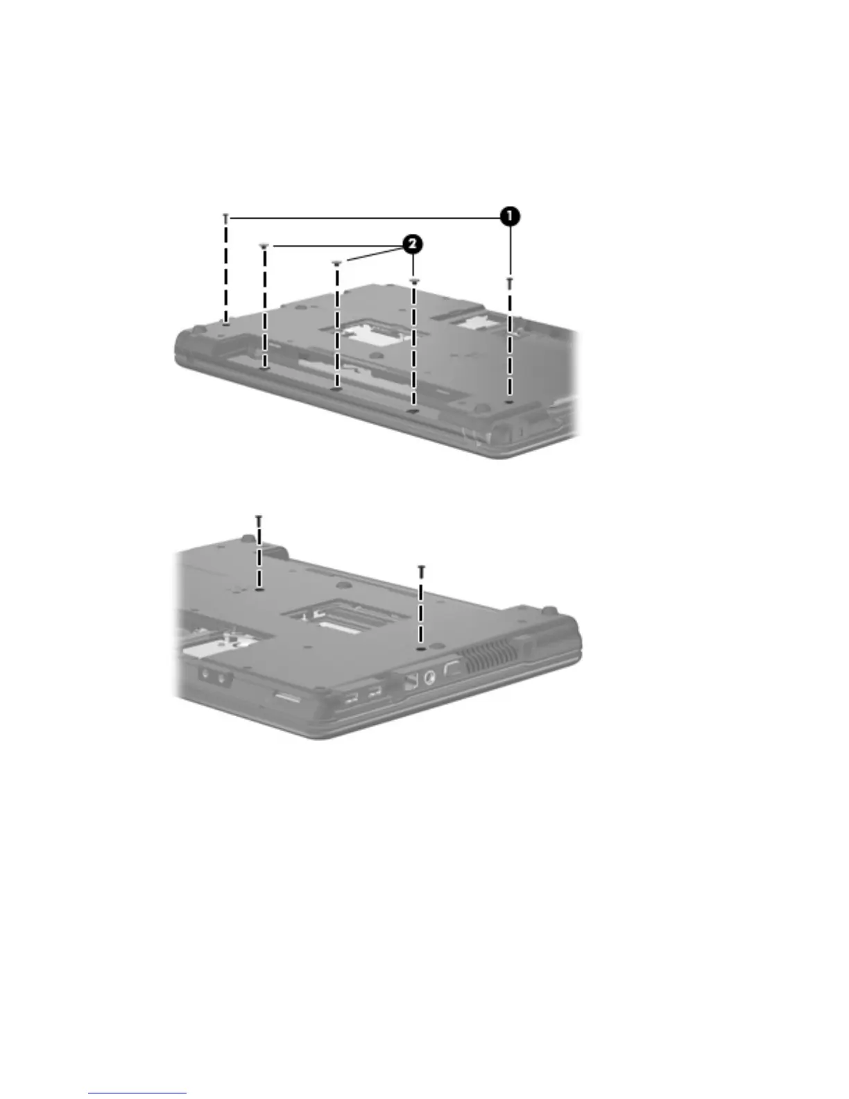 2. Remove the two Torx 7.0-mm screws that secure the keyboard to the computer.