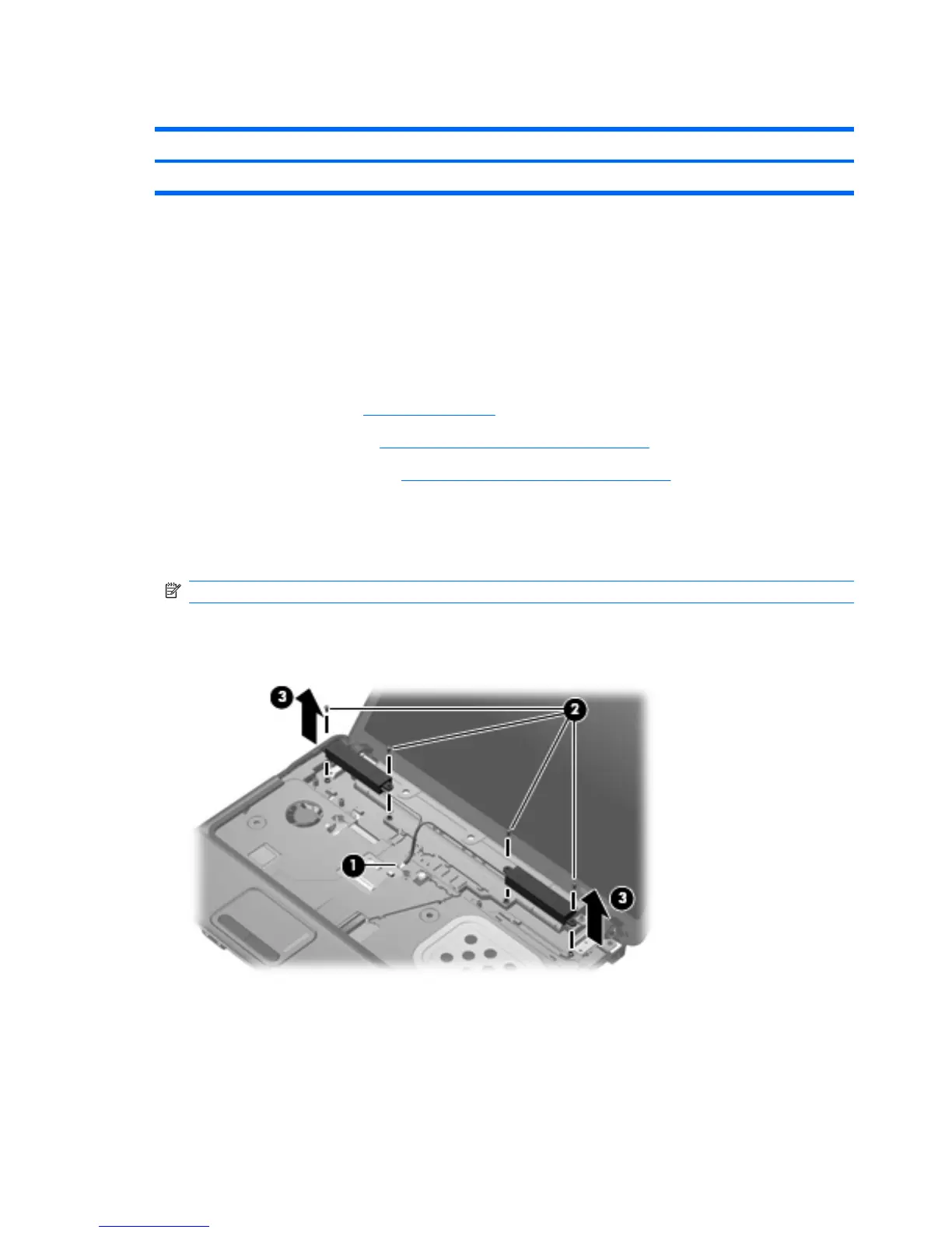 2. Remove the four Phillips 4.0-mm screws (2) that secure the speakers to the top cover.