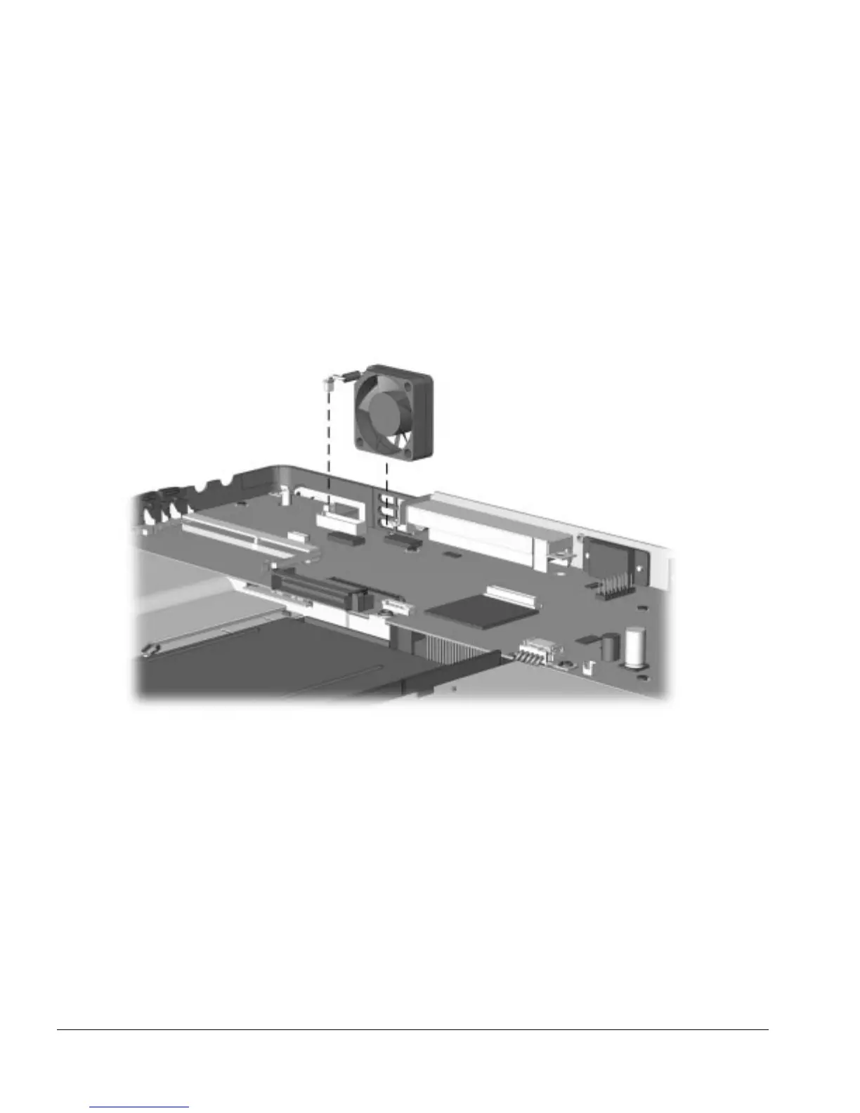 6. Disconnect the fan power cable from the system board.