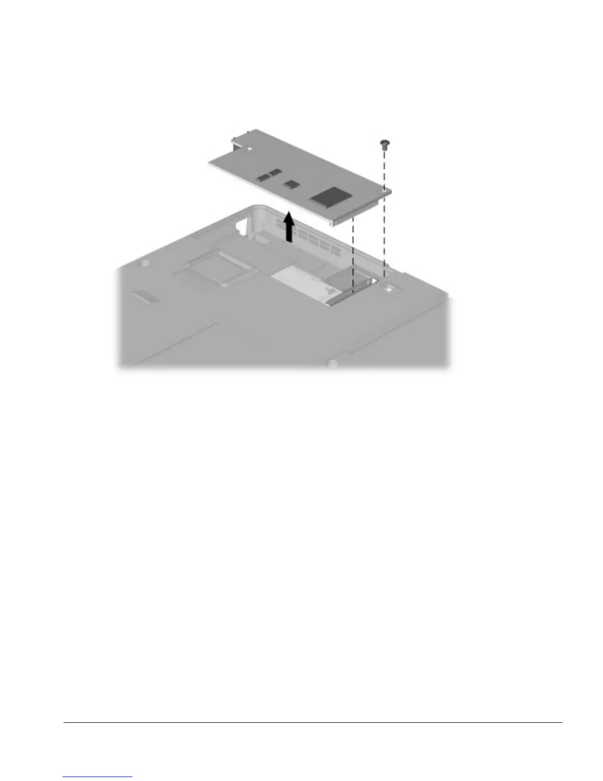 6. Carefully pull the modem board release tab and lift the modem from the computer.