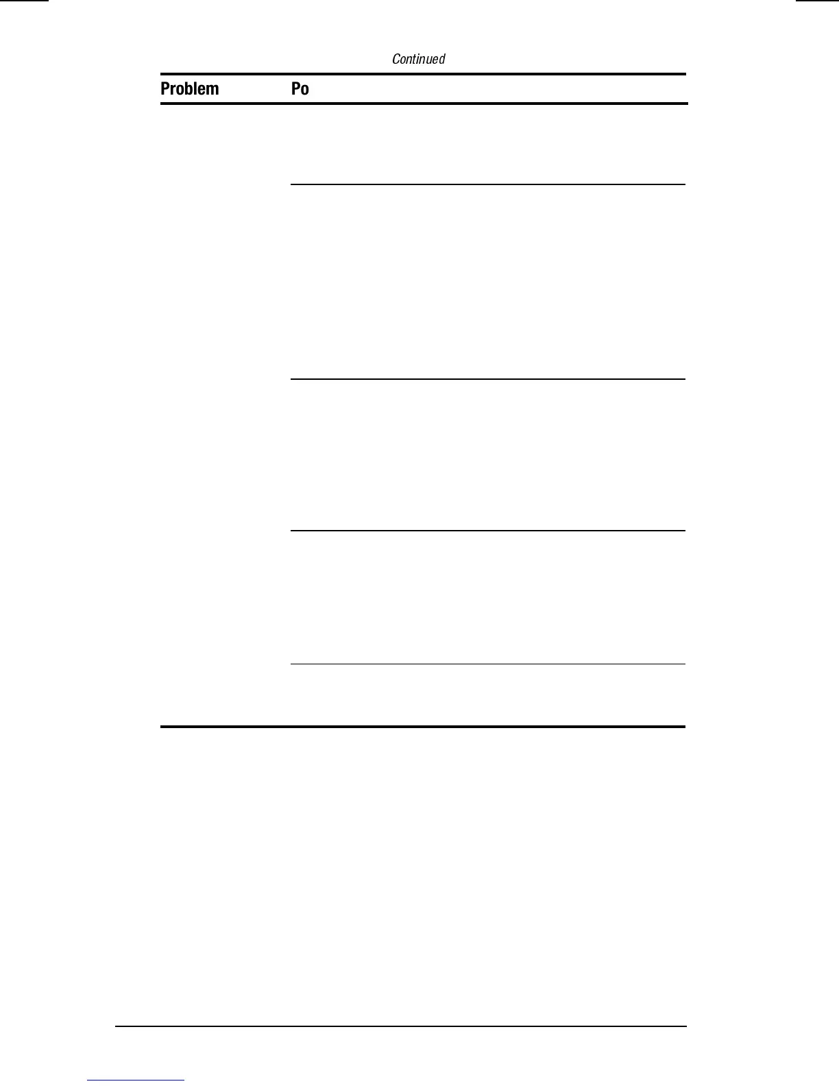 Problem Possible Cause Solution
