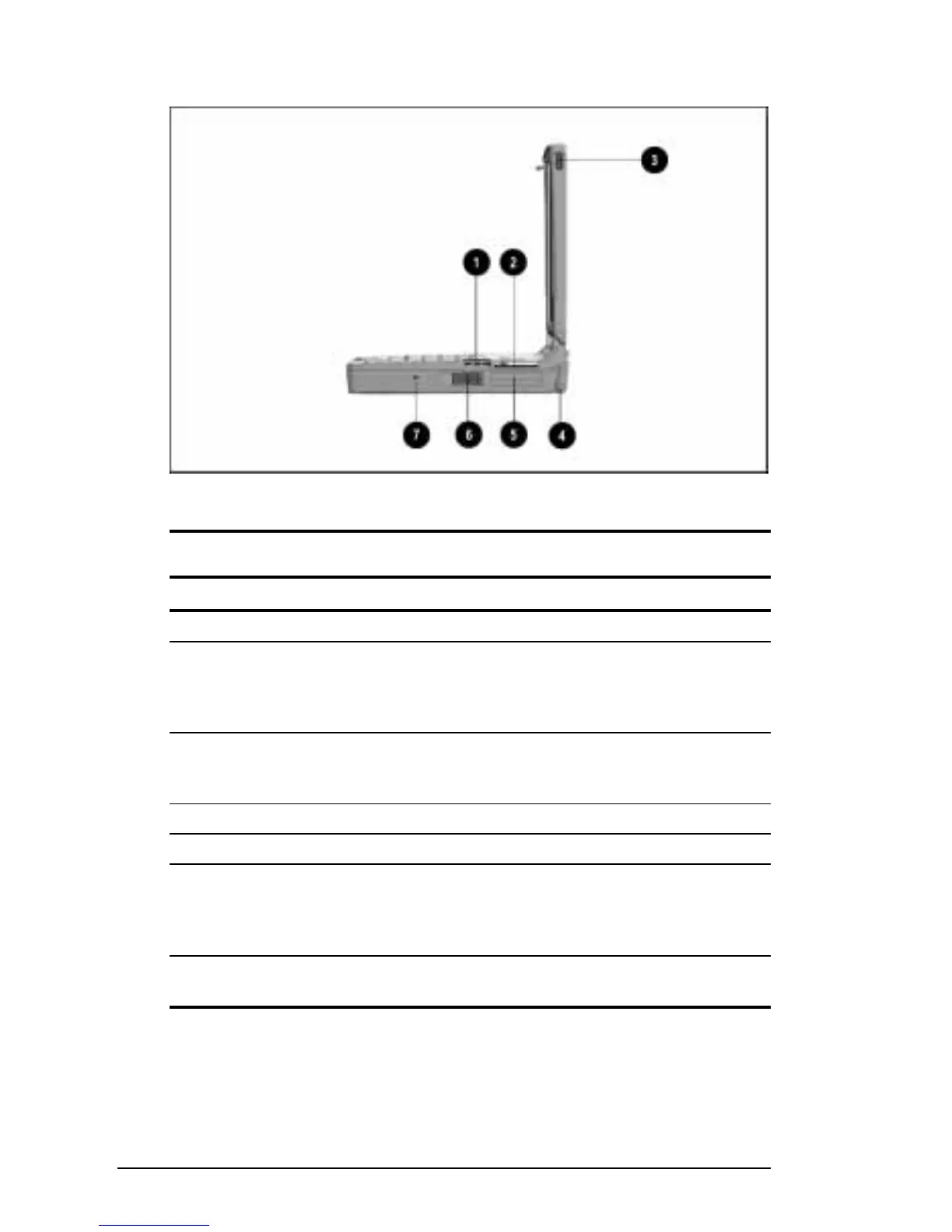 Display release latch Opens the computer. (Use with the