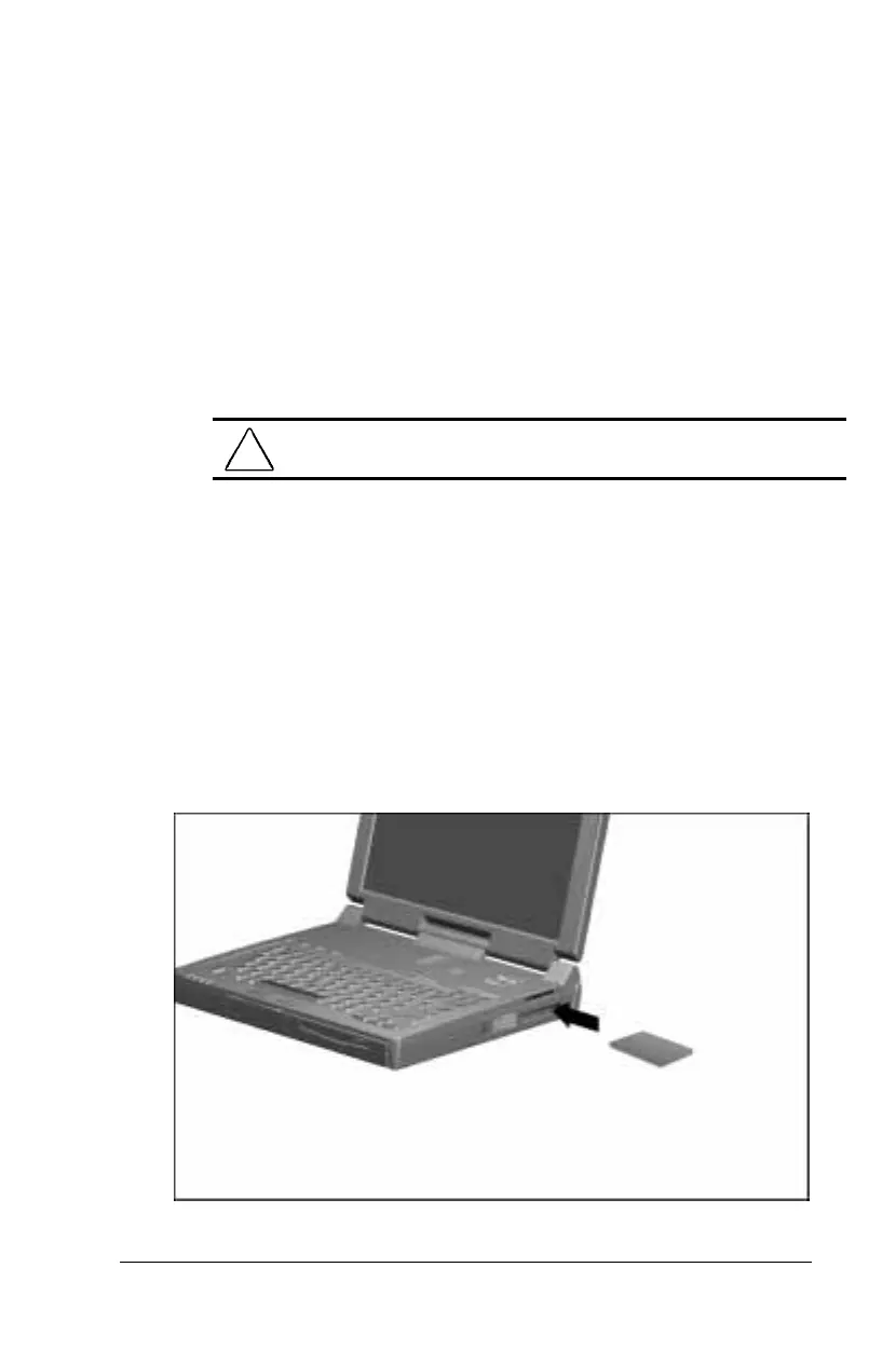 slot before inserting the PC Card. When a PC Card is inserted