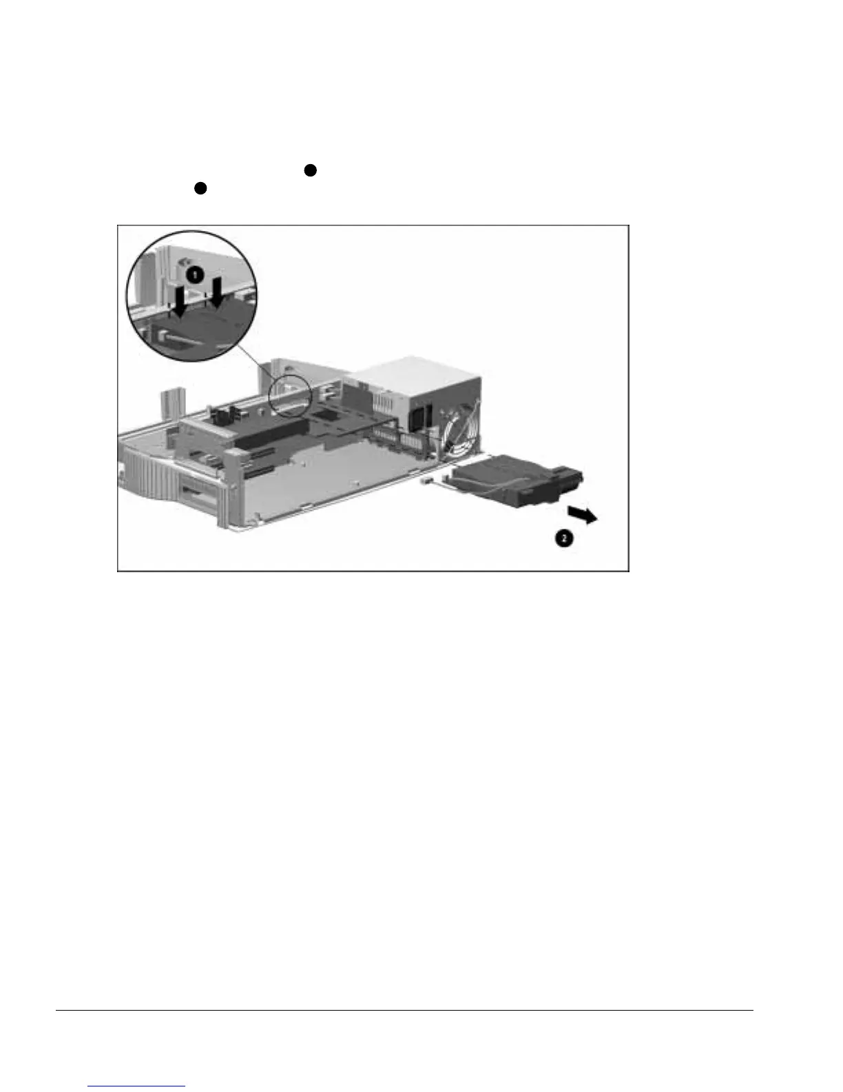 9. Remove the mechanism assembly by pressing down on the two square tabs on the