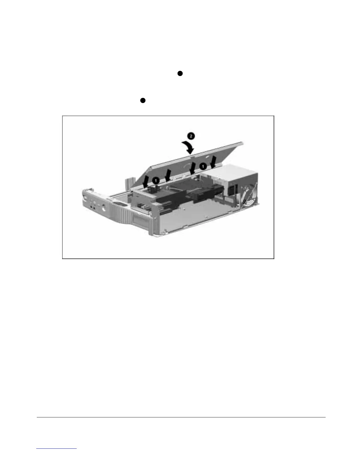 3. Install the two screws securing the top brace to the base assembly and power supply.