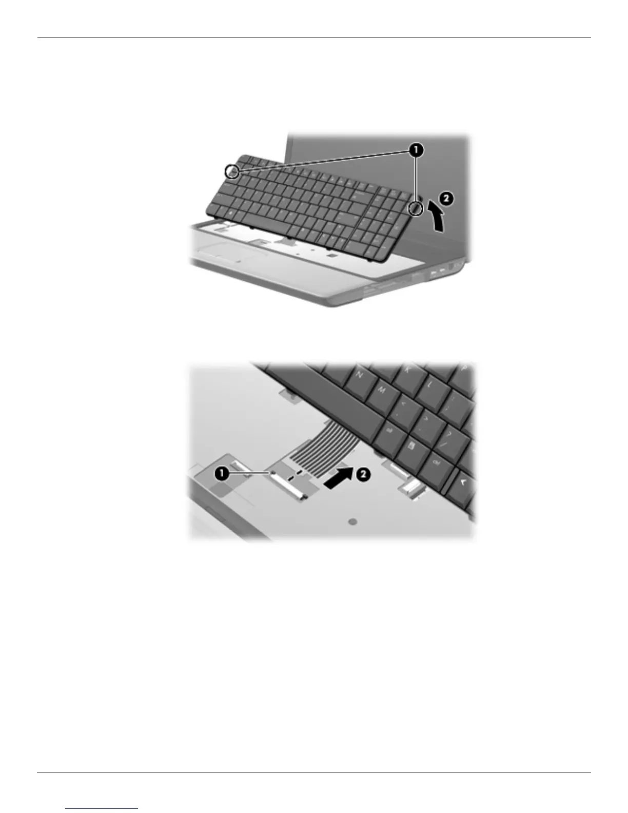 6. Lift the rear edge of the keyboard 2, and then slide it back until it rests on the display.
