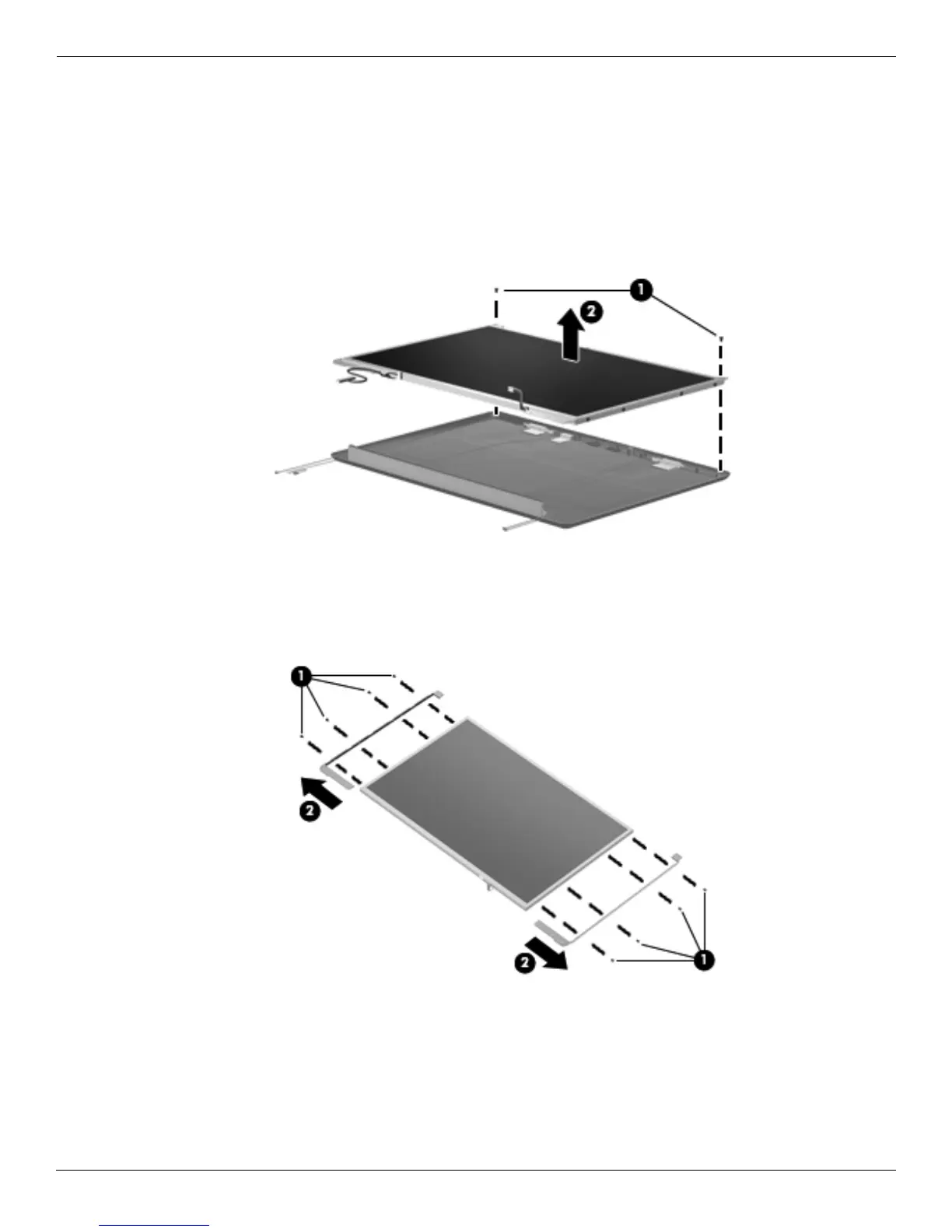 19. Remove the display panel brackets 2 from the display panel. The display panel brackets are available using