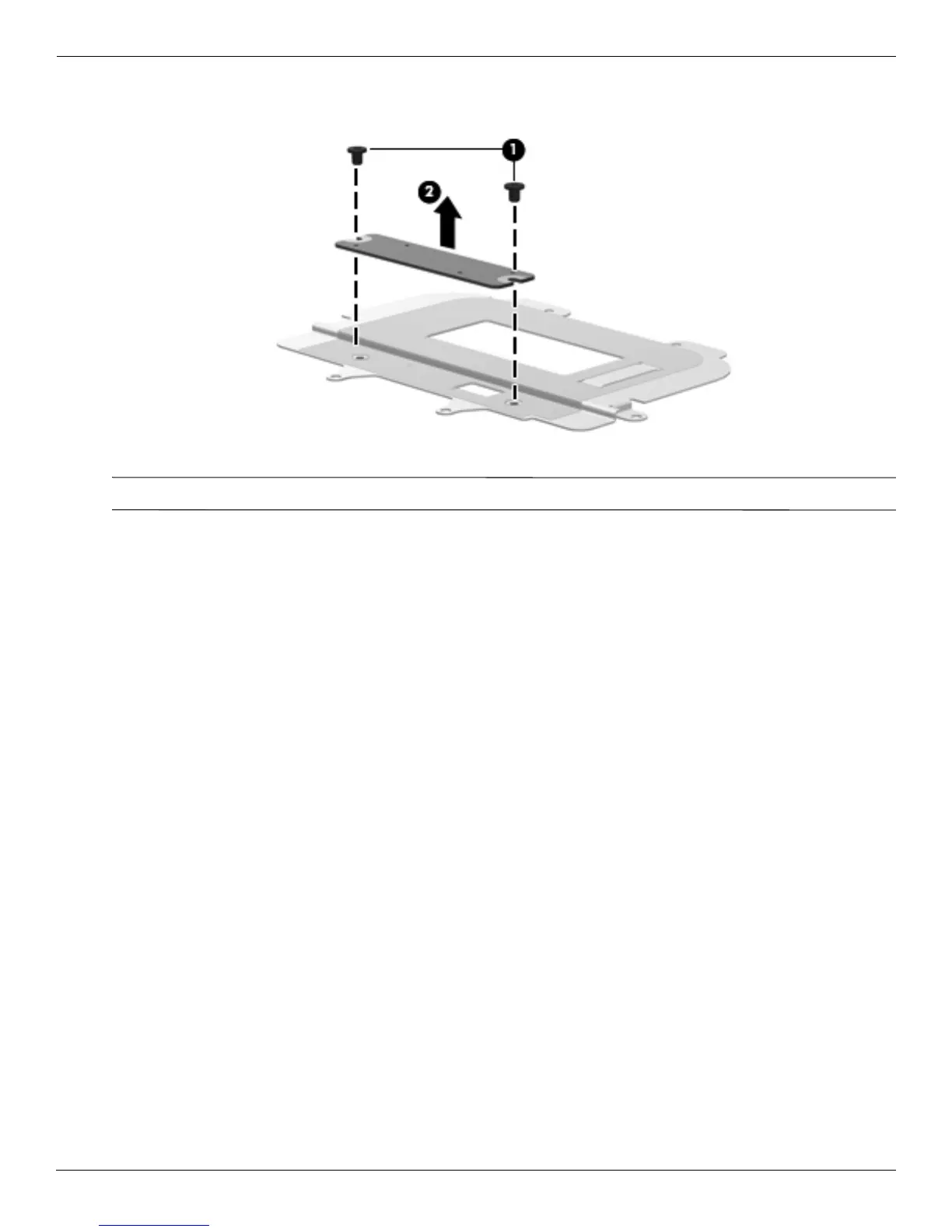 7. Remove the two Phillips PM1.5x3.0 screws 1 that secure the switch actuator to the TouchPad board bracket,