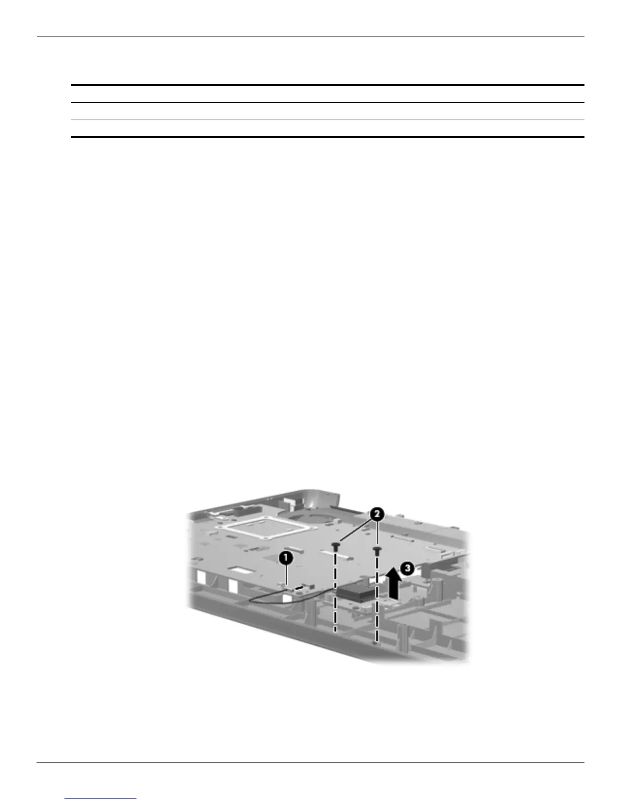 1. Disconnect the Bluetooth module cable 1 from the system board. The Bluetooth cable is available using spare