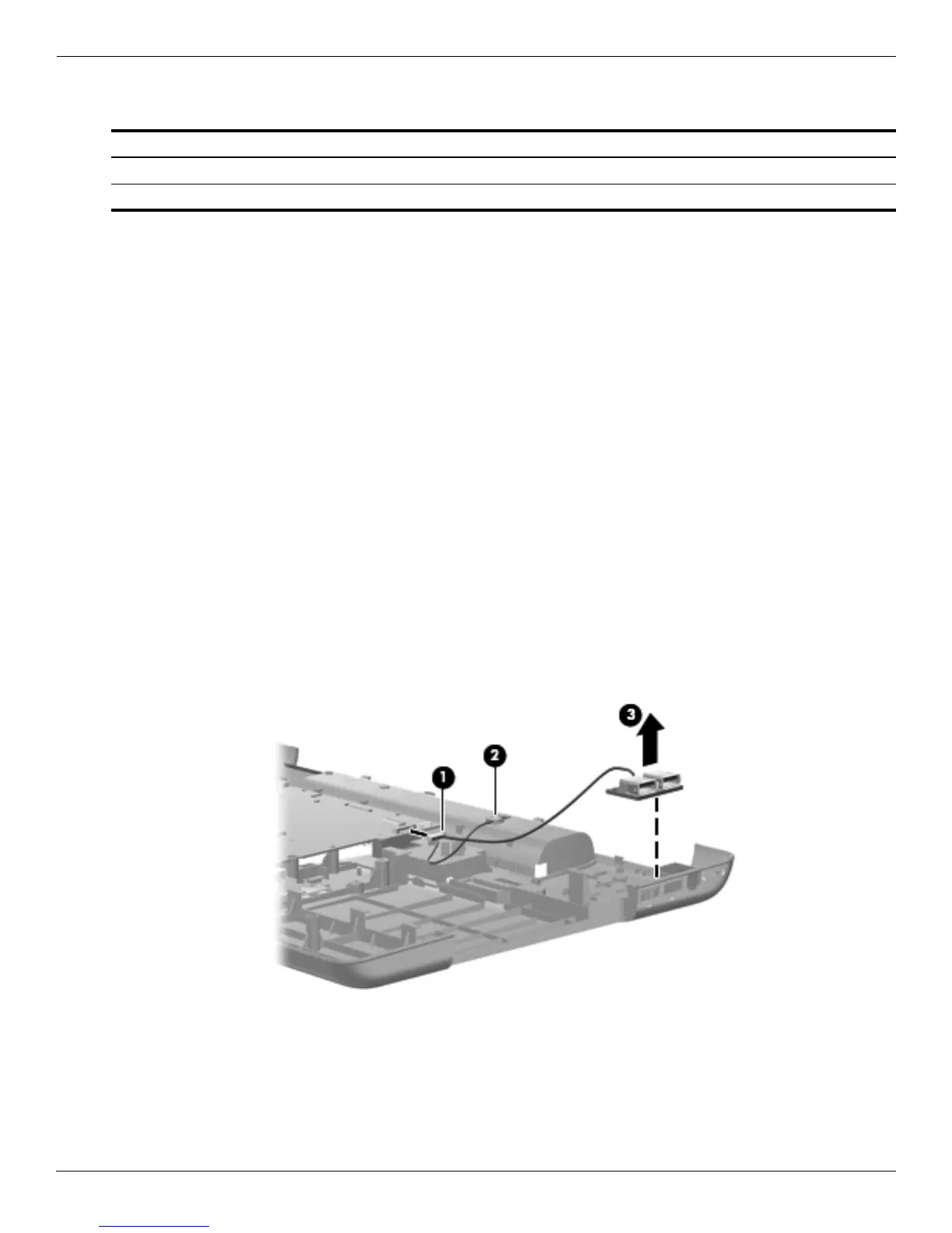 1. Disconnect the USB board cable 1 from the system board.