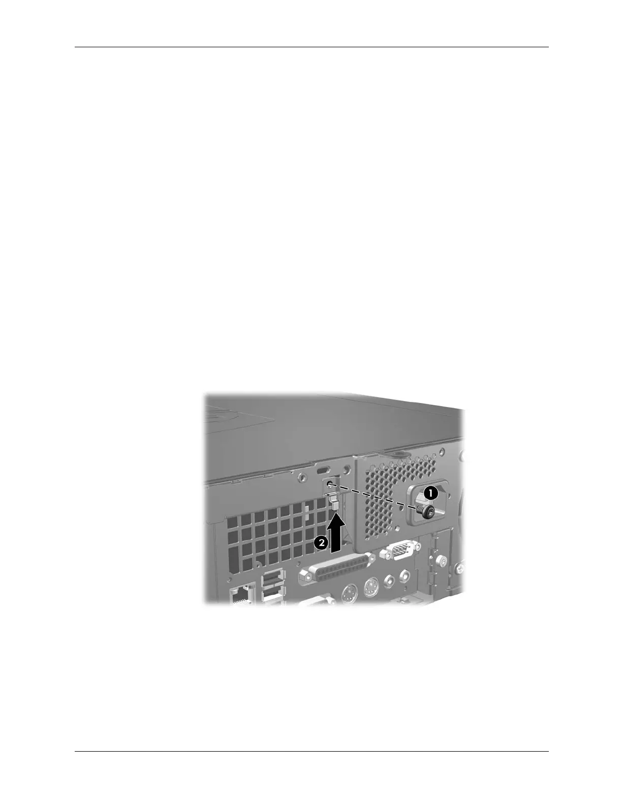2. Using the Smart Cover FailSafe Key, remove the tamper-proof screw 1 that secures the