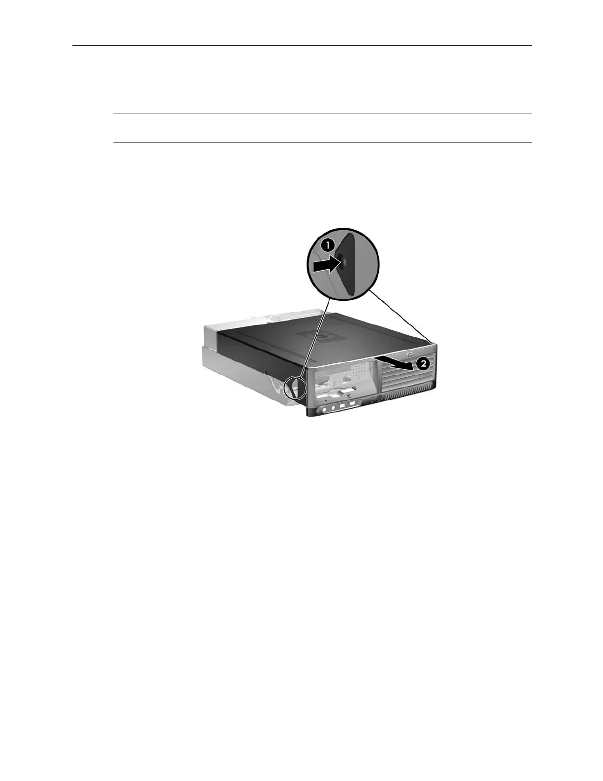 2. Slide the computer cover towards the front of the computer until it stops 2, then lift it up and