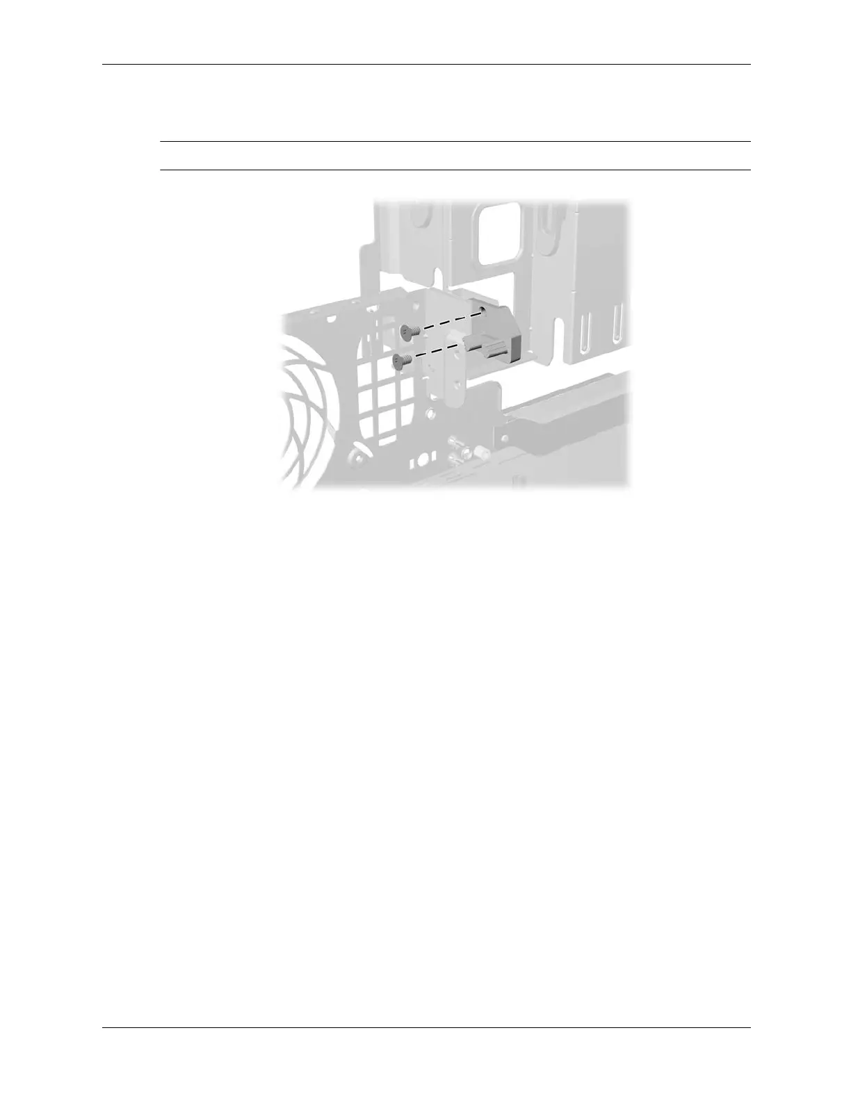 8. Hold the drive cage in the upright position while removing the two screws that secure the